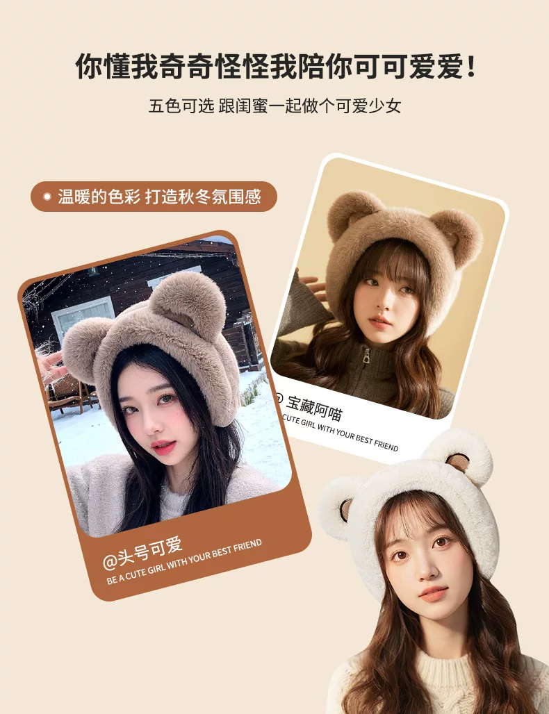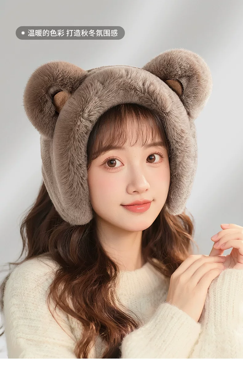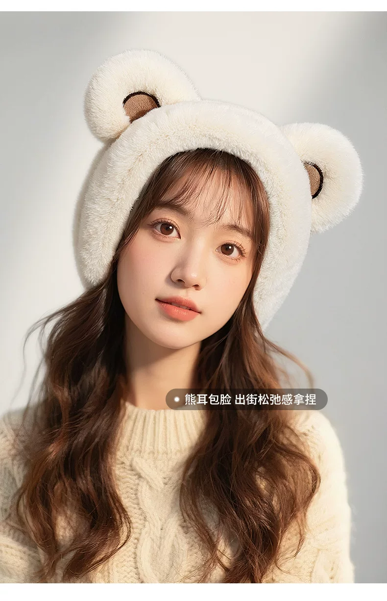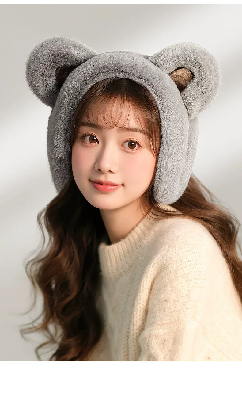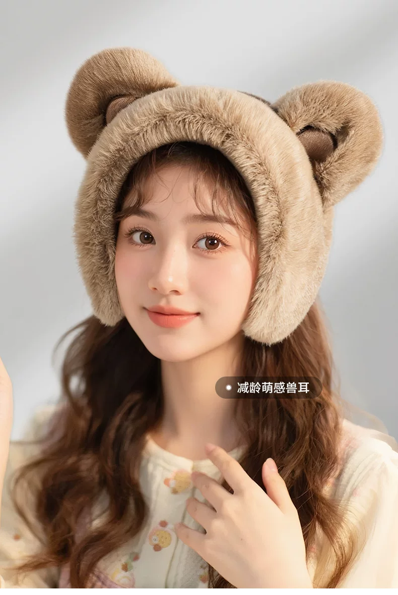 - Khăn bịt tai Little Bear ấm áp dành cho nữ mùa đông 2025 kiểu mới, chống lạnh, chống sương giá, chống gió, bảo vệ tai cho học sinh
