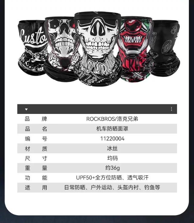 Khăn che mặt chống nắng Rock Brothers chất liệu lụa đá, mùa hè, unisex, che kín mặt, chống gió, giữ ấm cổ, mũ bảo hiểm đi xe máy