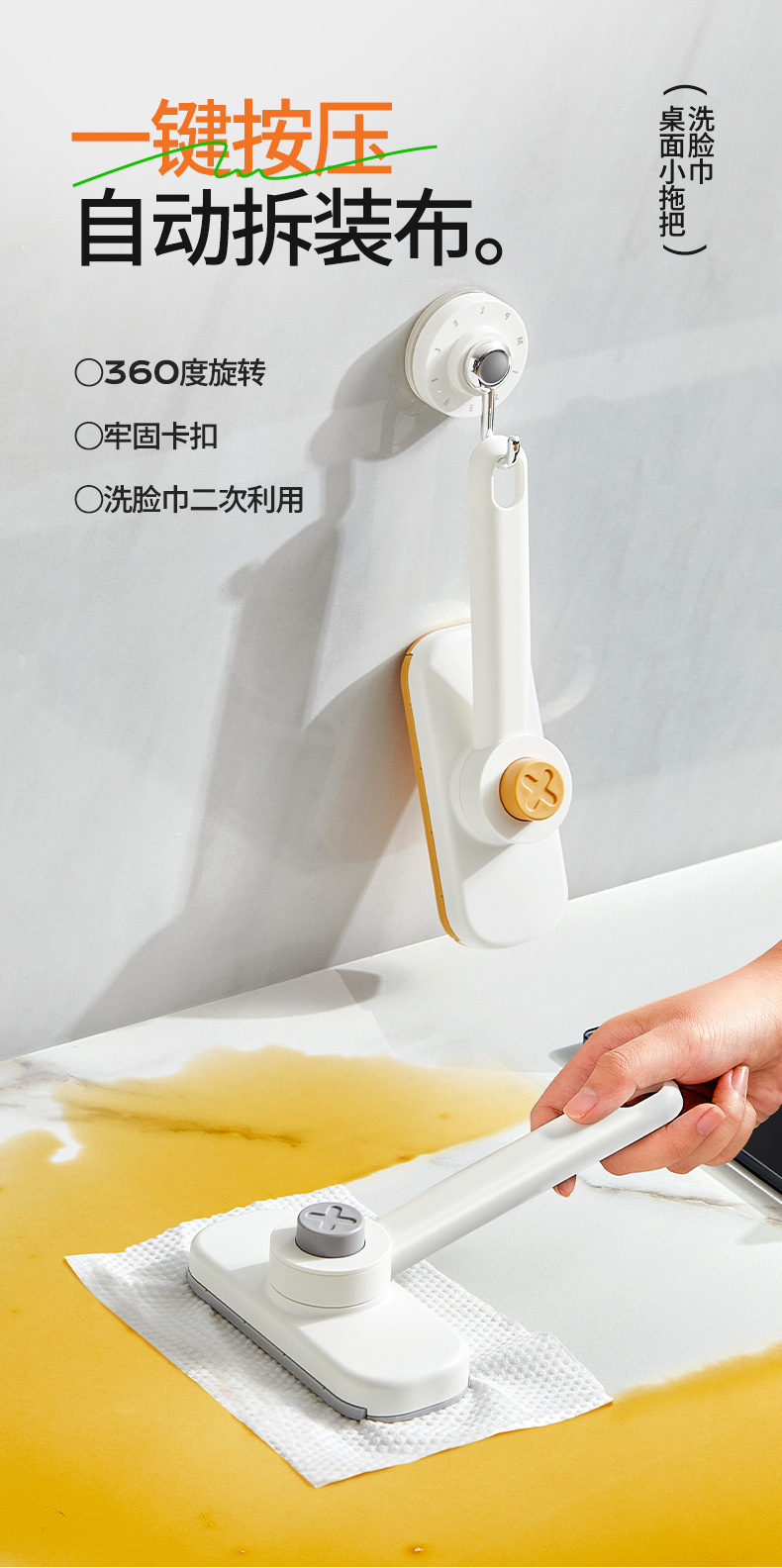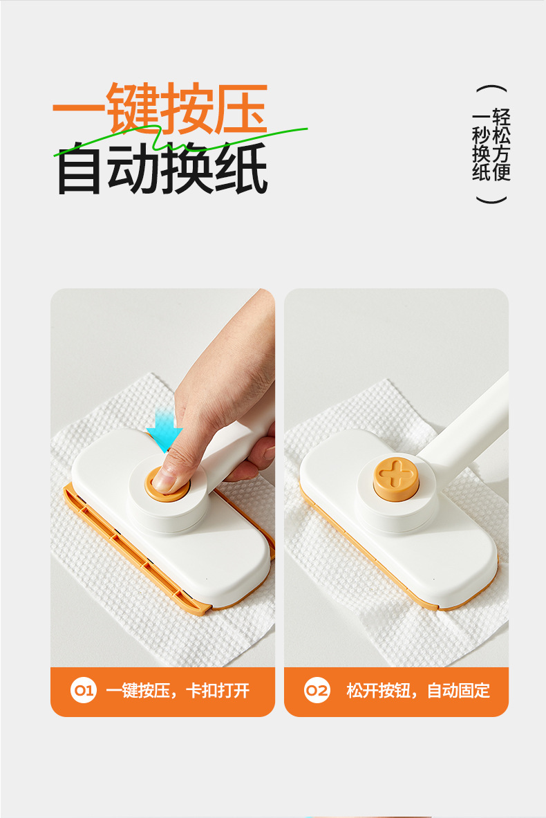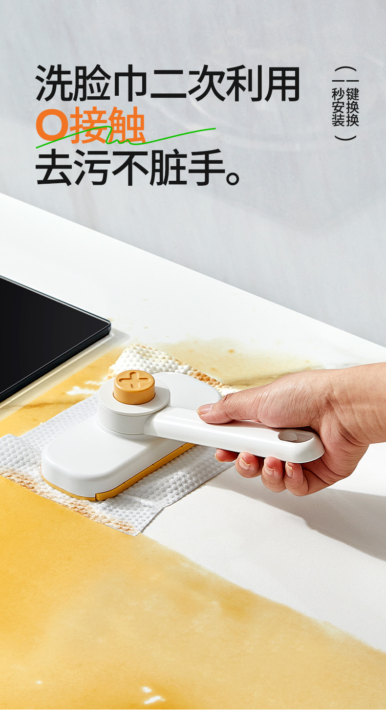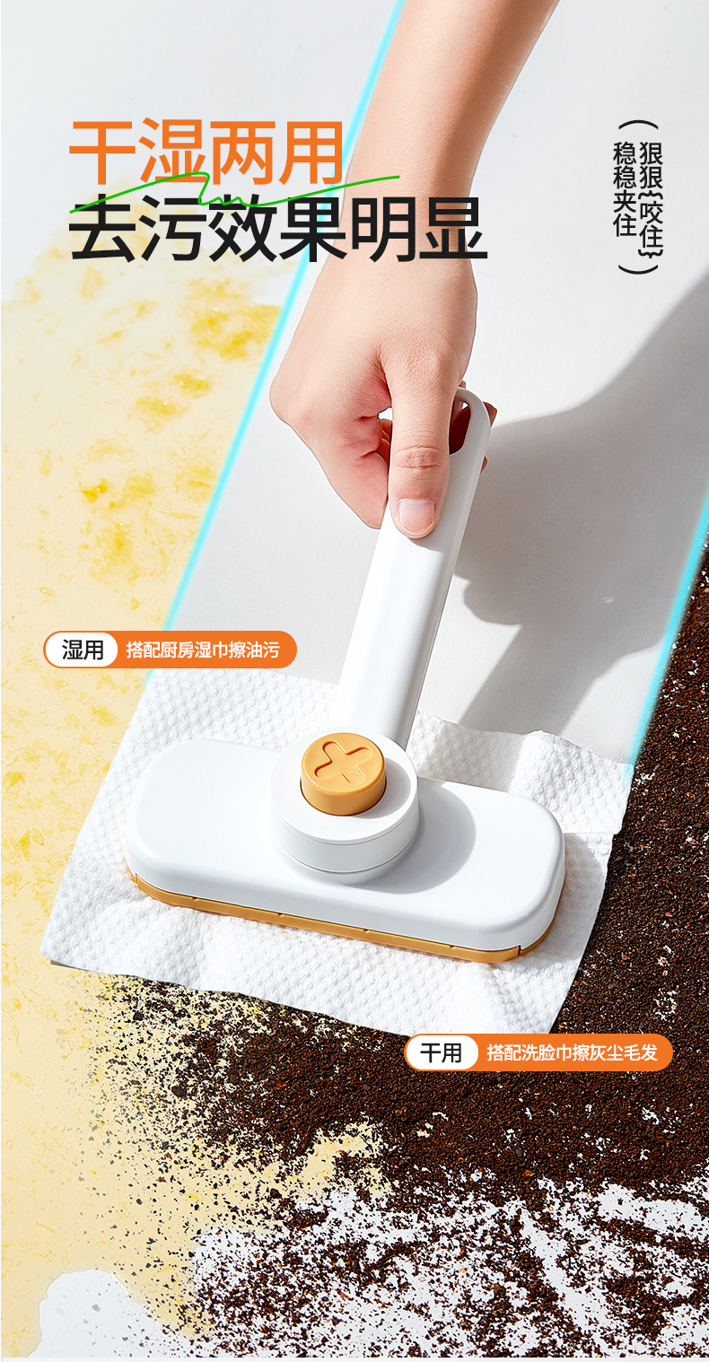 Khăn rửa mặt Jieyi, cây lau nhà nhỏ, bàn chải lau tường phòng tắm có thể được kẹp bằng vải, thiết bị lau kính sàn tự động không cần giặt tay