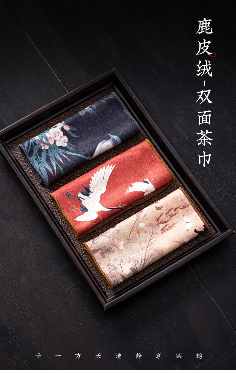 Khăn trà da lộn khăn trà khăn bàn trà khăn lau nhẹ sang trọng kiểu Trung Quốc thấm nước khăn giữ ấm phụ kiện bộ trà Kung Fu đệm trà