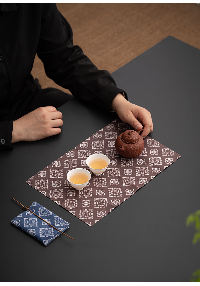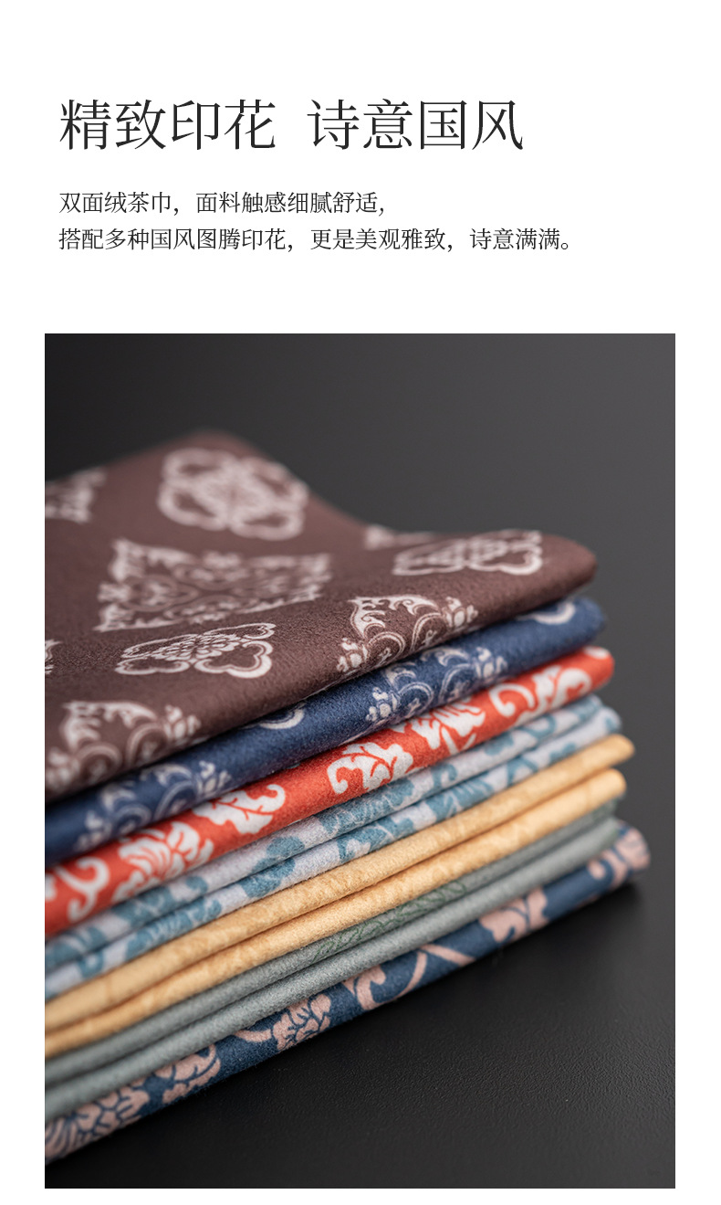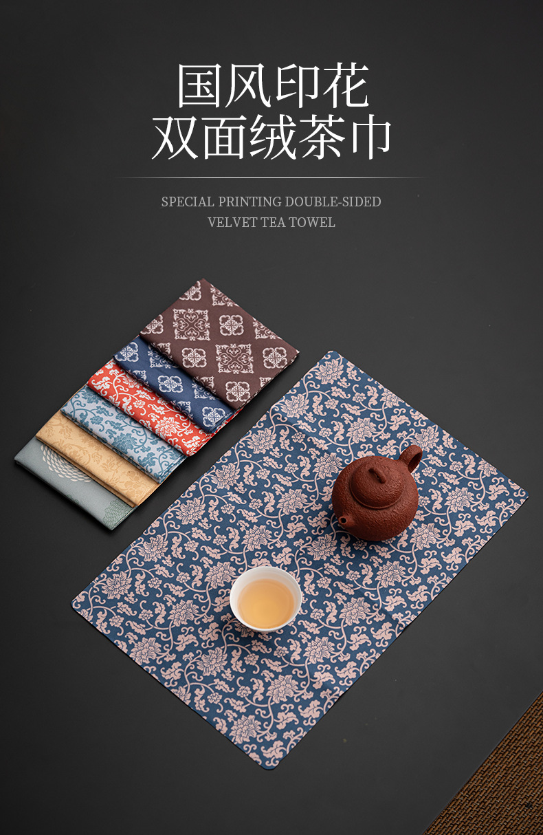 Khăn trà nhung hai mặt in hoa phong cách dân tộc Khăn trải bàn trà gia dụng thấm nước bình Thiền Bộ trà Kungfu trà đạo không phối