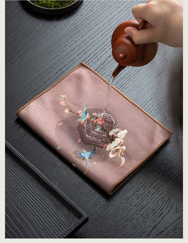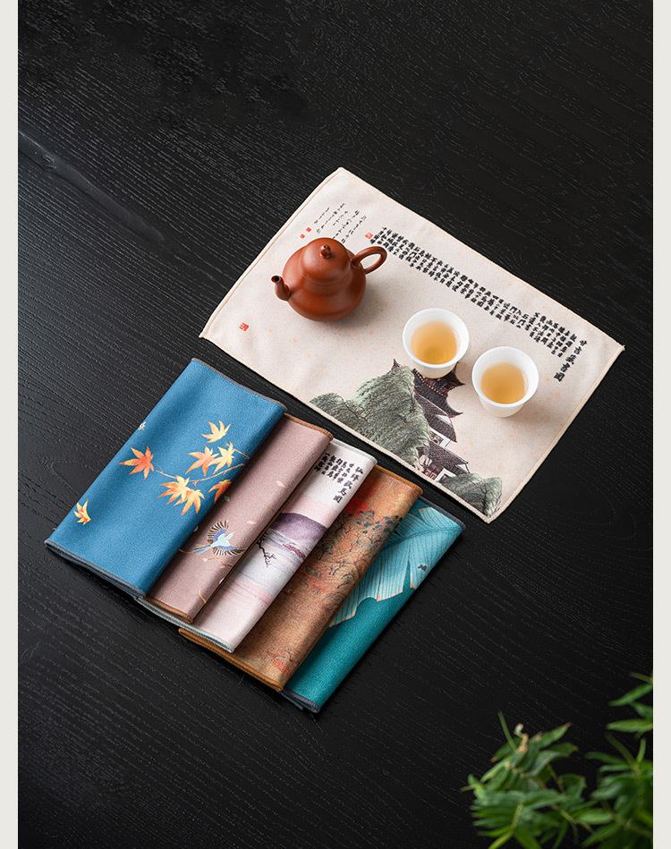 - Khăn trà sơn khăn trải bàn dày dặn cao cấp thấm nước phụ kiện bộ trà kungfu Trung Quốc ấm trà khăn lau khăn trải bàn