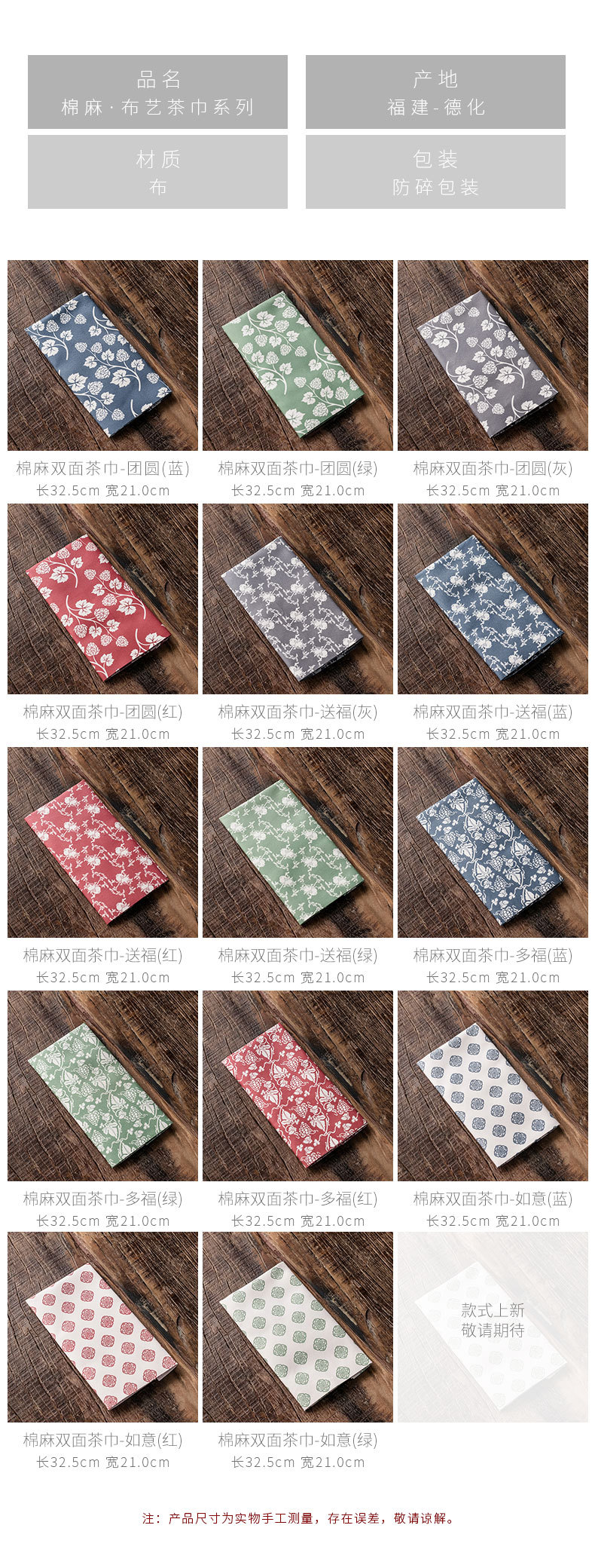 Khăn trà vải trà hai mặt cotton lanh thấm nước Vải trà lót ấm khăn trải bàn chuyên dụng dụng cụ Trà Matcha phụ kiện trà đạo chiếu trà