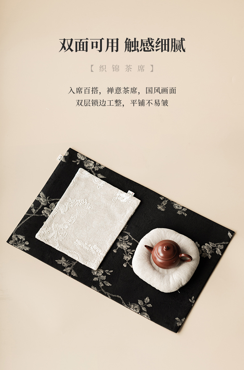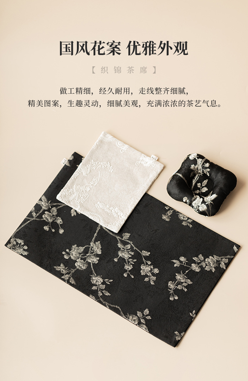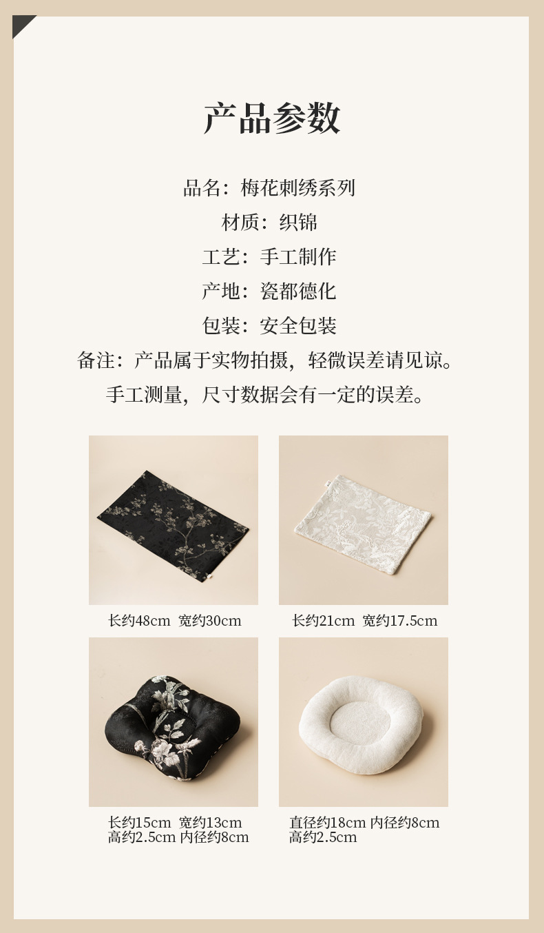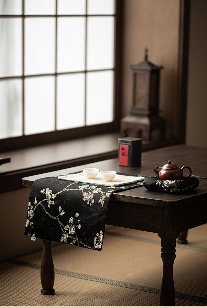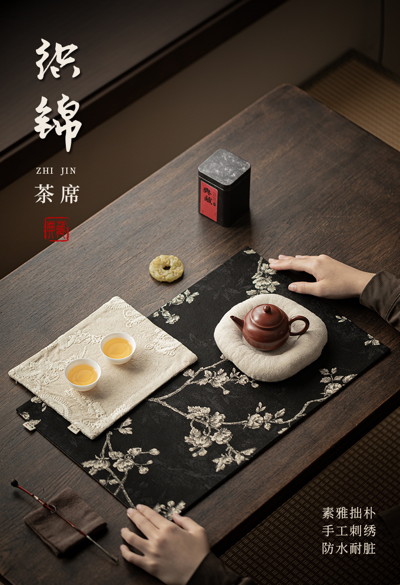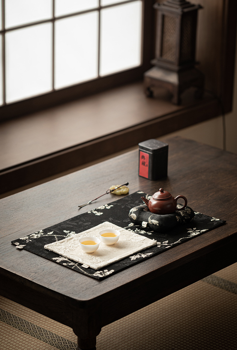 - Khăn trải trà gia dụng bằng vải gấm thêu hoa mai, đệm ấm trà cờ trà, đệm bọt khô cách nhiệt chống bỏng, phụ kiện trà đạo
