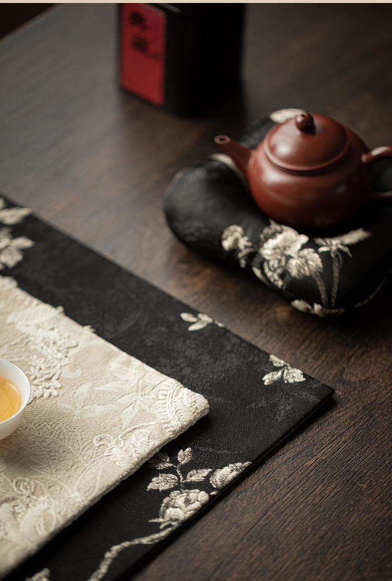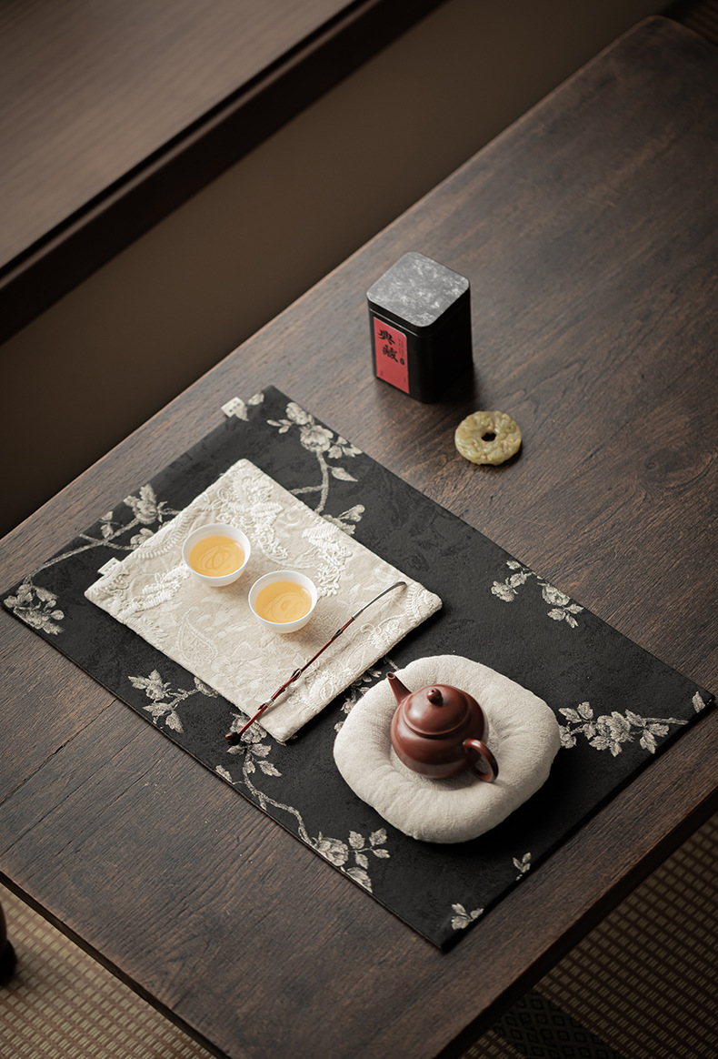 Khăn trải trà gia dụng bằng vải gấm thêu hoa mai, đệm ấm trà cờ trà, đệm bọt khô cách nhiệt chống bỏng, phụ kiện trà đạo