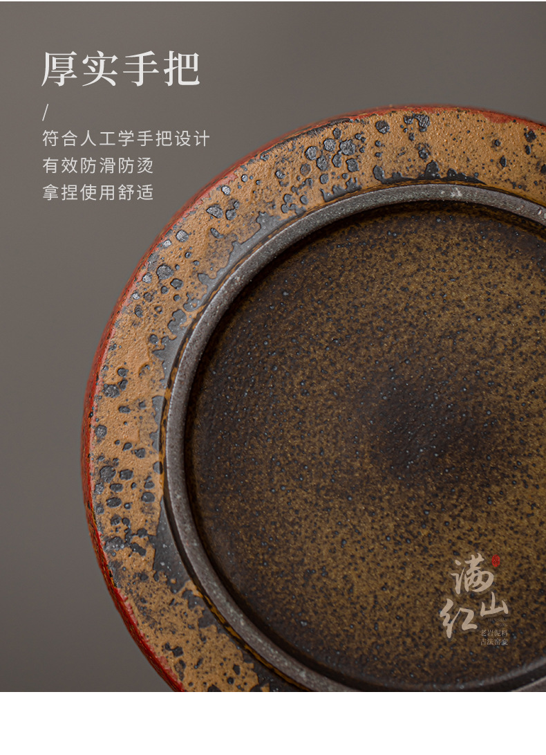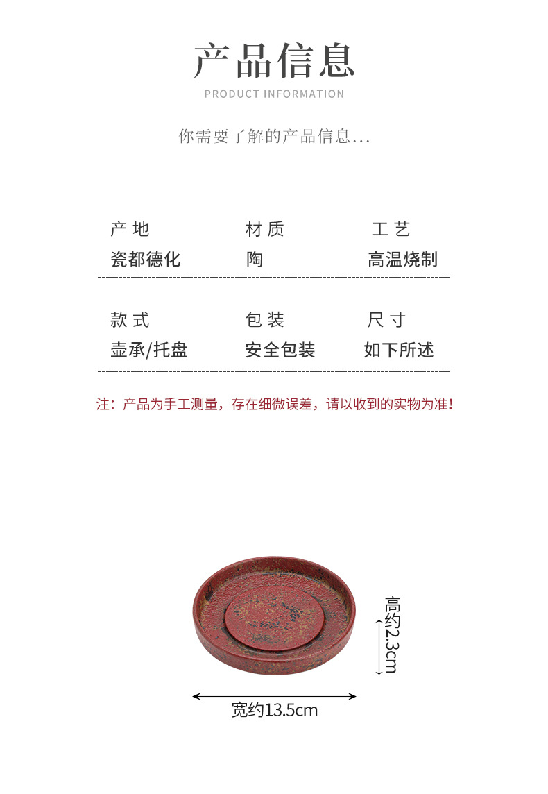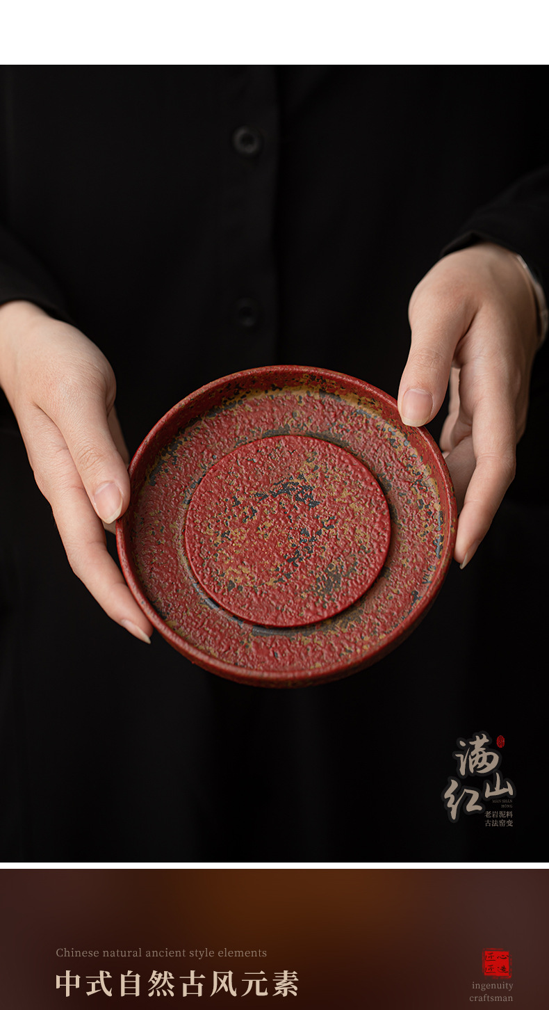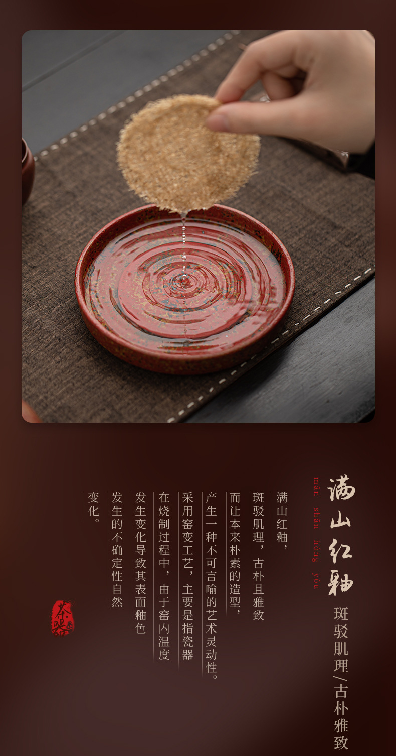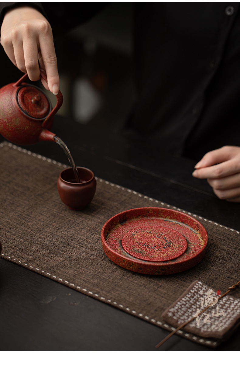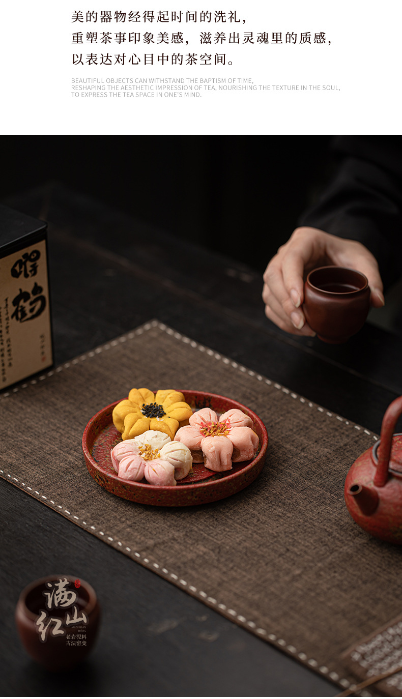 - Khay đựng ấm trà kiểu cổ điển Trung Quốc, chất liệu đất sét đỏ núi đá cũ, nhỏ gọn, dùng trong gia đình, phụ kiện trà đạo.