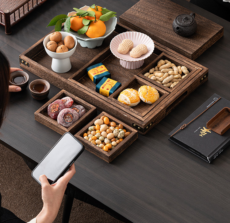 - Khay đựng trái cây paulownia, khay đựng cà phê phòng khách gia dụng, khay đựng trái cây ăn vặt kiểu Trung Quốc, khay đựng trái cây, khay đựng bánh ngọt trà chiều