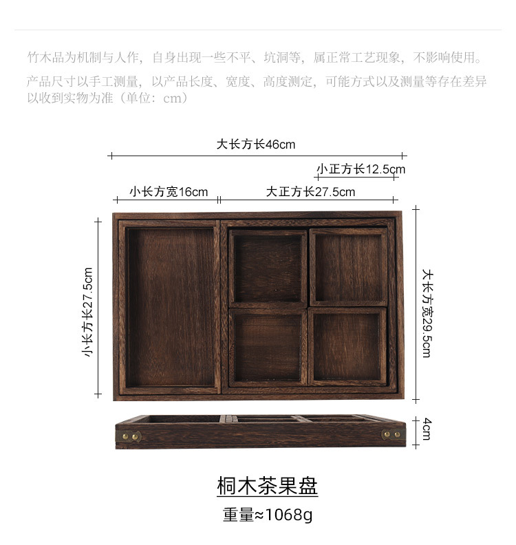 Khay đựng trái cây paulownia, khay đựng cà phê phòng khách gia dụng, khay đựng trái cây ăn vặt kiểu Trung Quốc, khay đựng trái cây, khay đựng bánh ngọt trà chiều