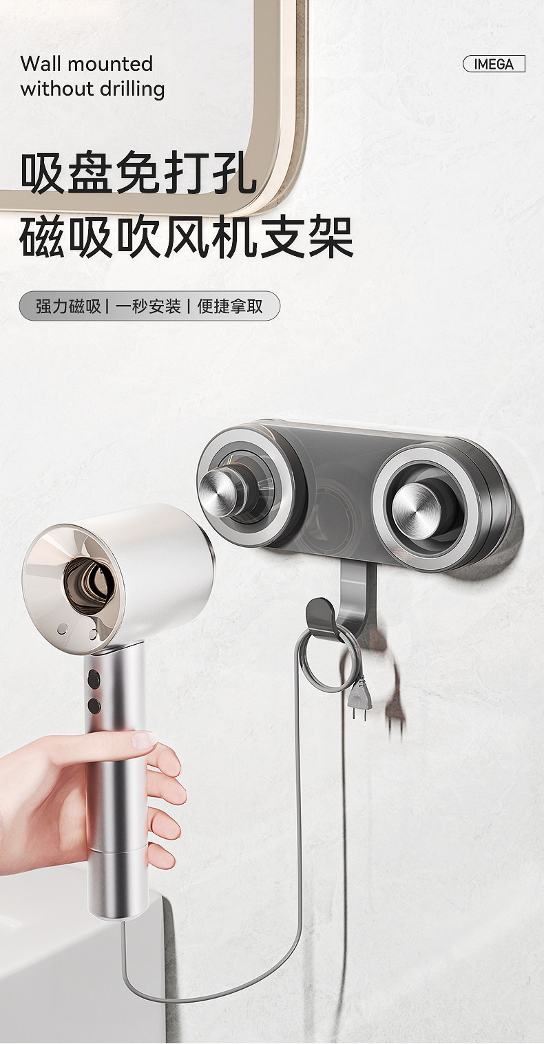 - Khay hút, giá để máy sấy tóc, giá đỡ máy sấy tóc Dyson không đục lỗ trong phòng tắm và phòng tắm từ tính