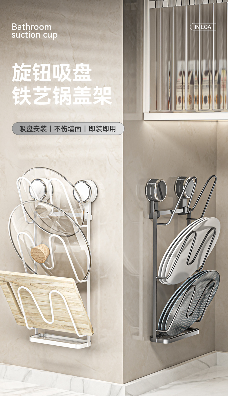 - Khay hút, giá nắp nồi sắt rèn, dụng cụ đặt nắp nồi không đục lỗ, giá treo tường, giá bếp đa năng