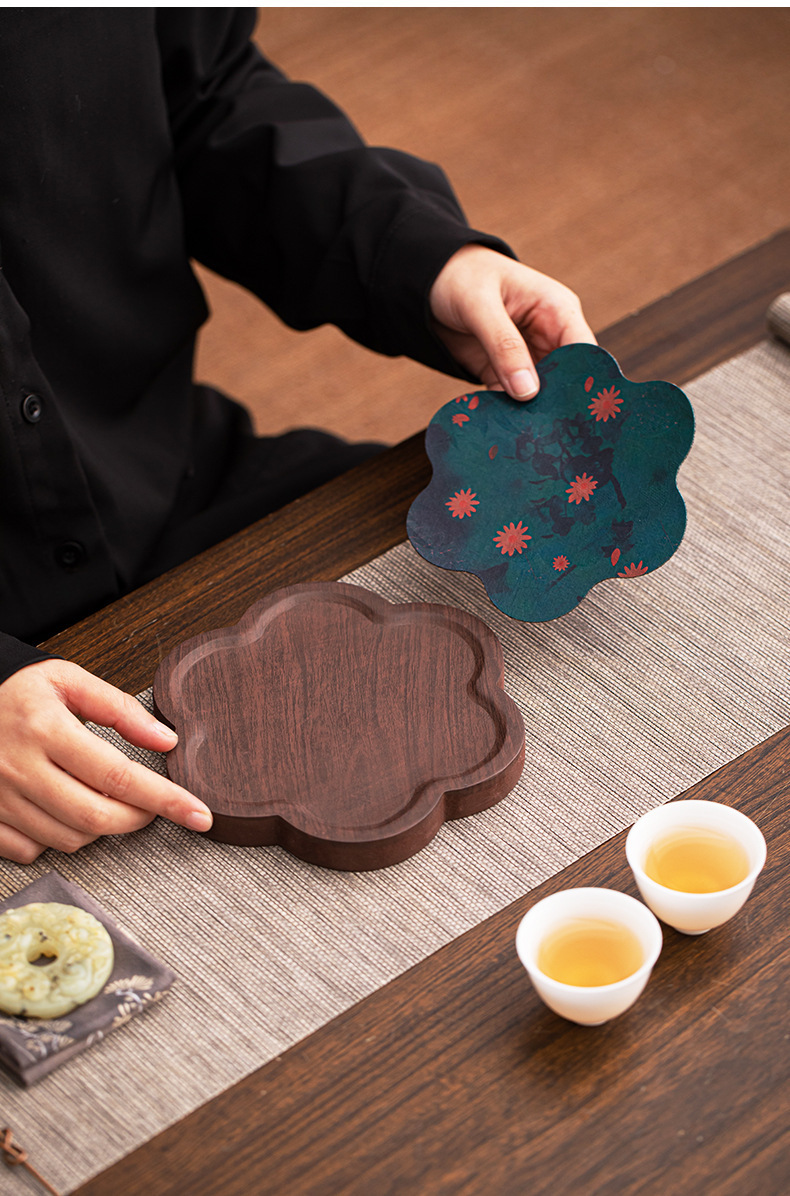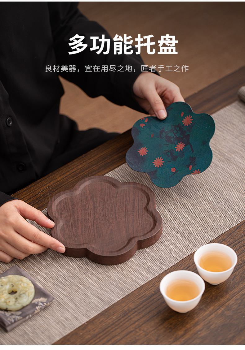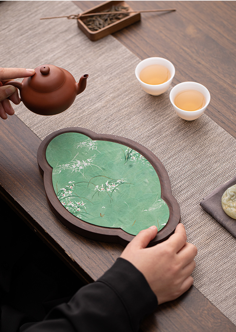 Khay khay trà màu gỗ óc chó kiểu Trung Quốc khay đựng ấm gia dụng cổ điển khay đựng bọt khô ý Thiền đệm cách nhiệt chiếu trà chống nước