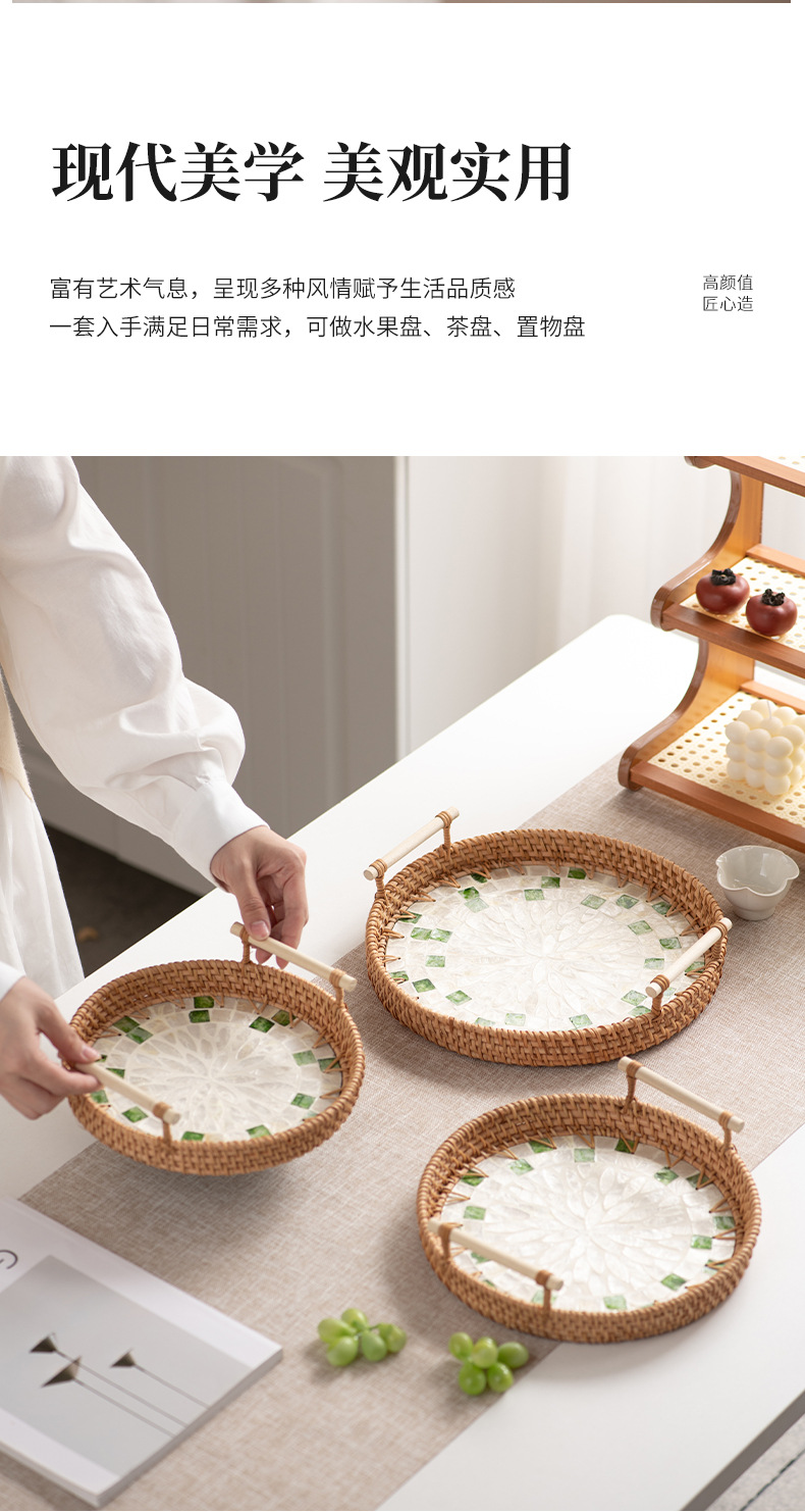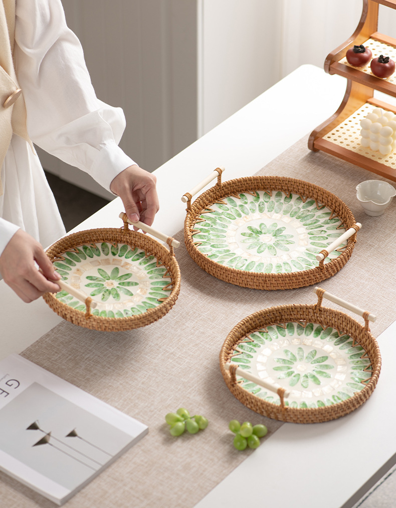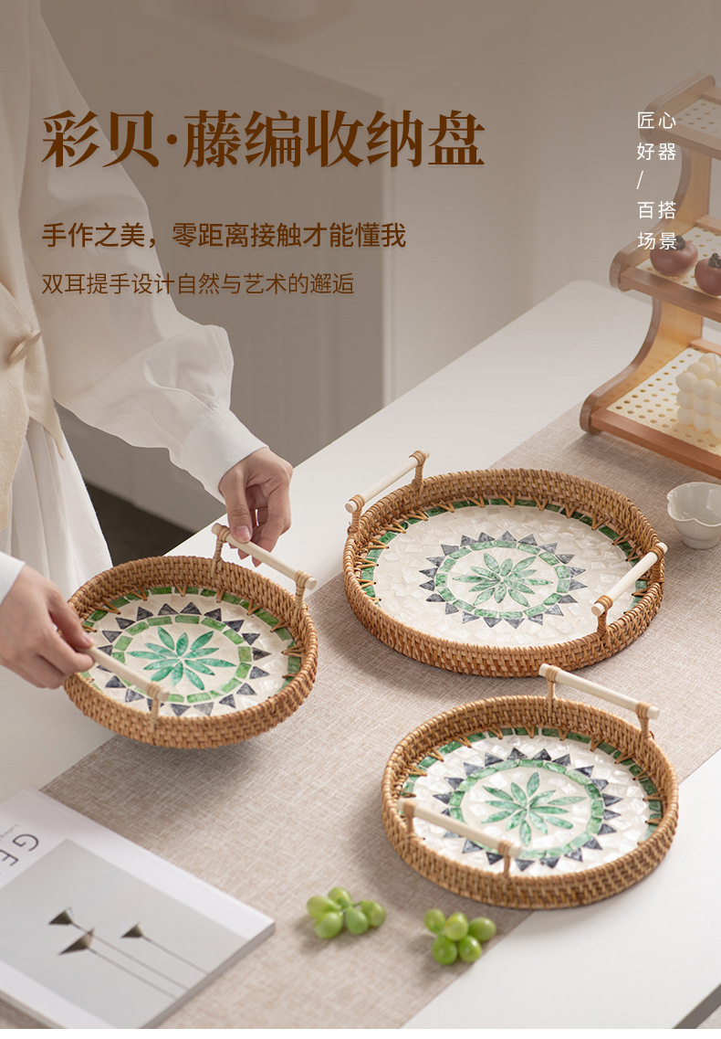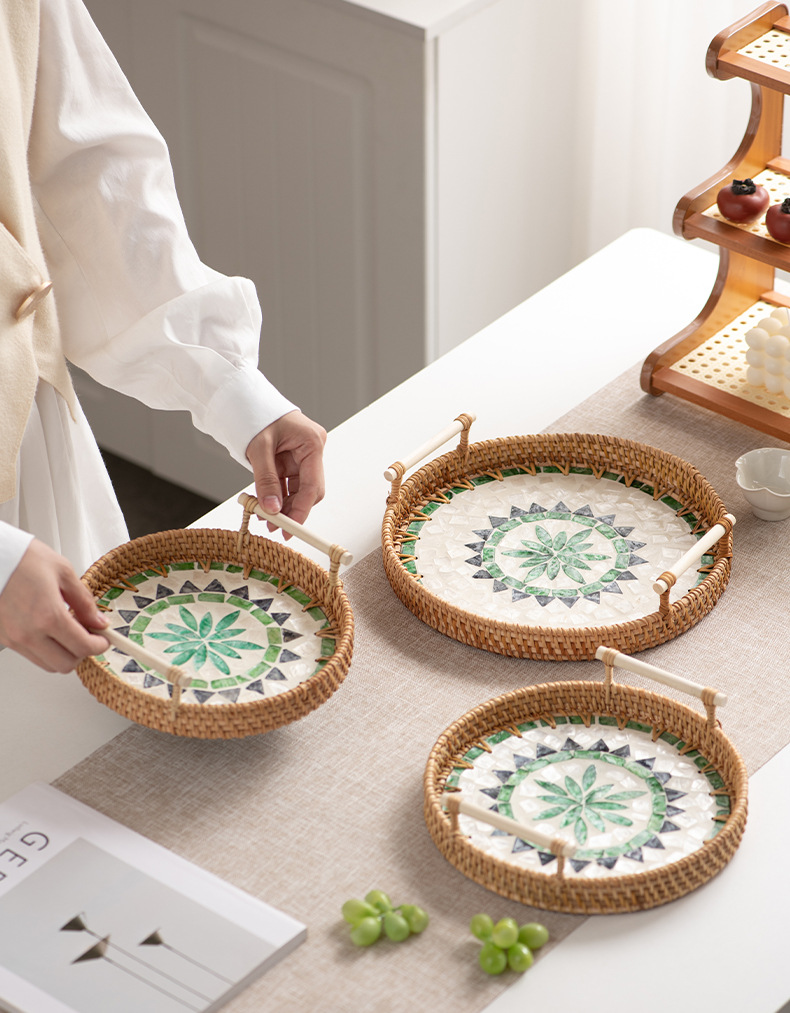 Khay mây Việt Nam, khay đựng trái cây vỏ sò, giỏ ăn sáng dệt kiểu Scandinavian, giỏ bánh mì tre, giỏ đựng đồ ăn nhẹ sáng tạo