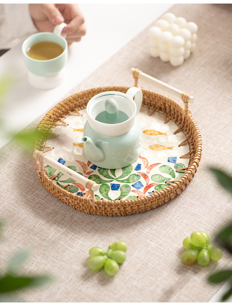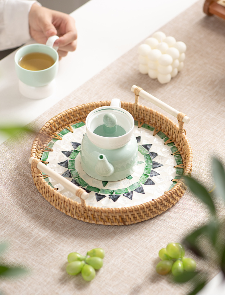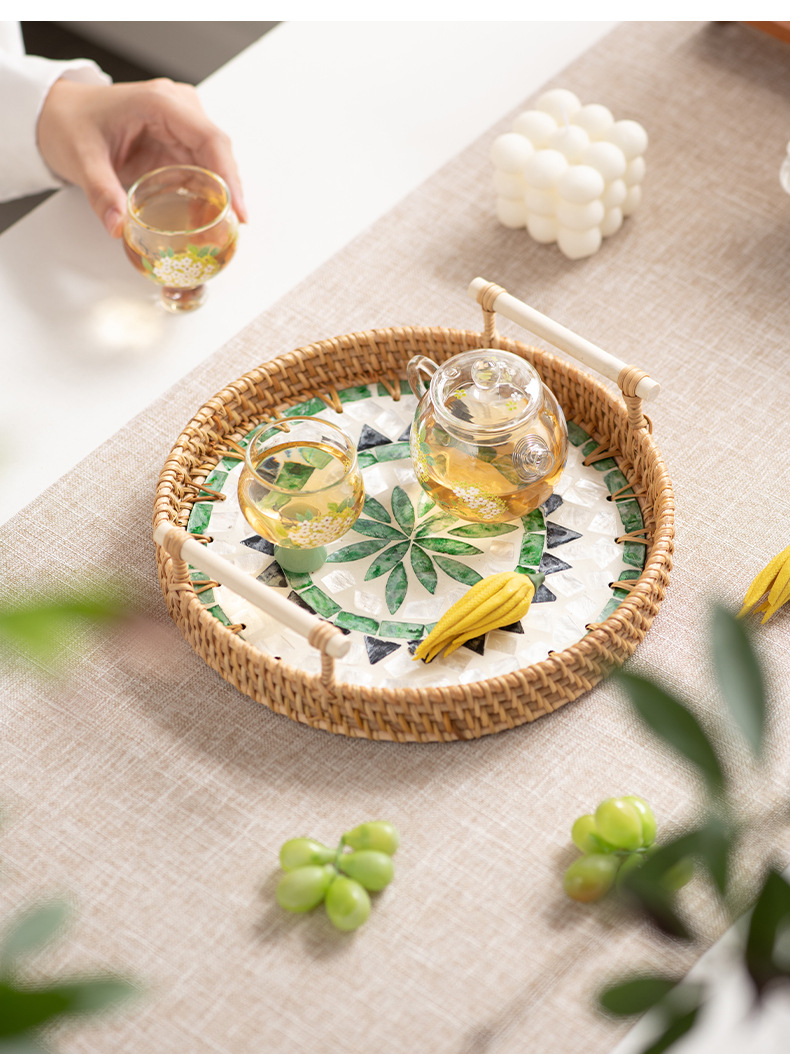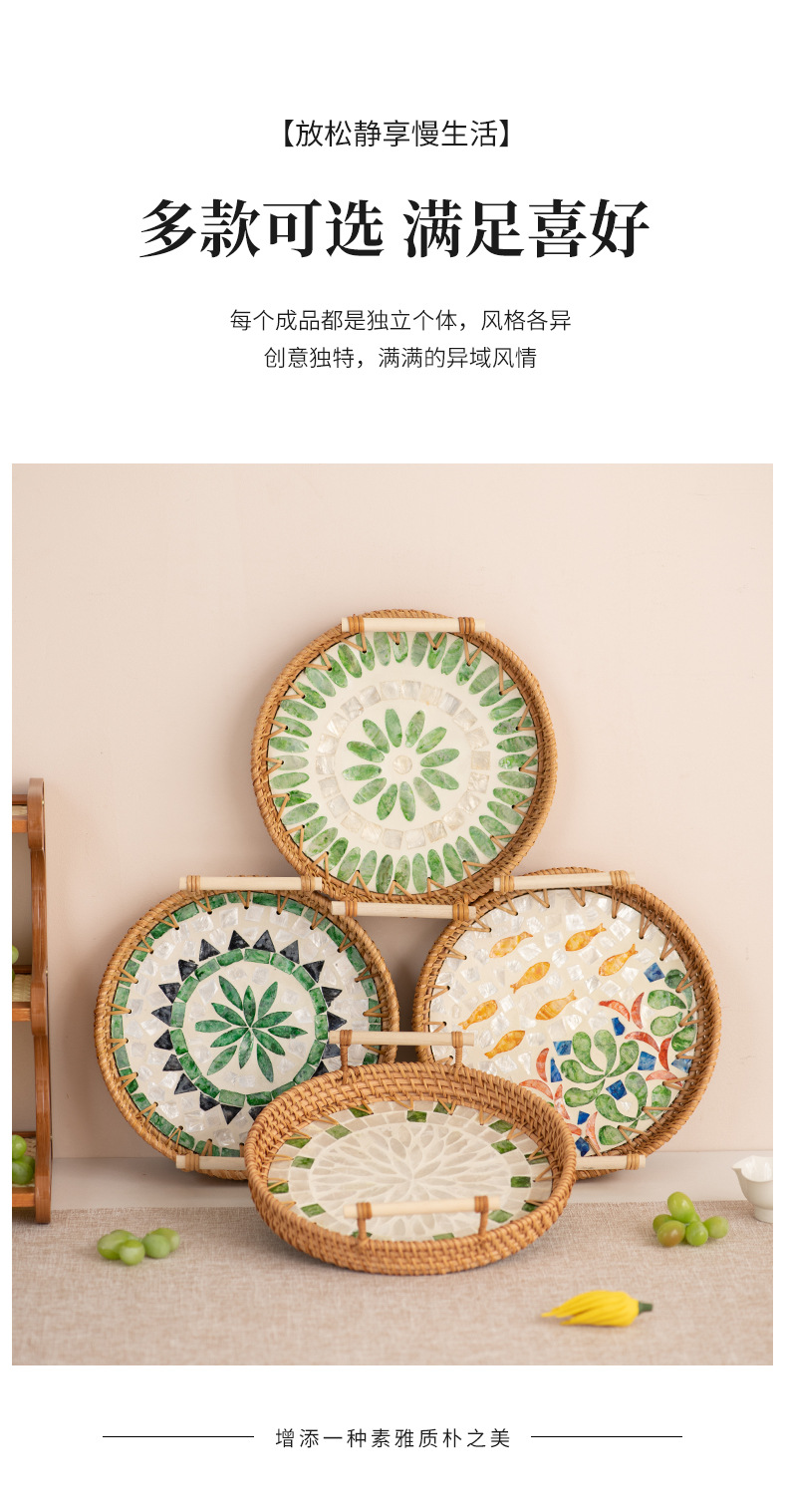 Khay mây Việt Nam, khay đựng trái cây vỏ sò, giỏ ăn sáng dệt kiểu Scandinavian, giỏ bánh mì tre, giỏ đựng đồ ăn nhẹ sáng tạo