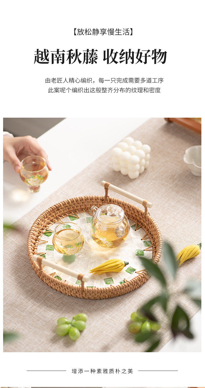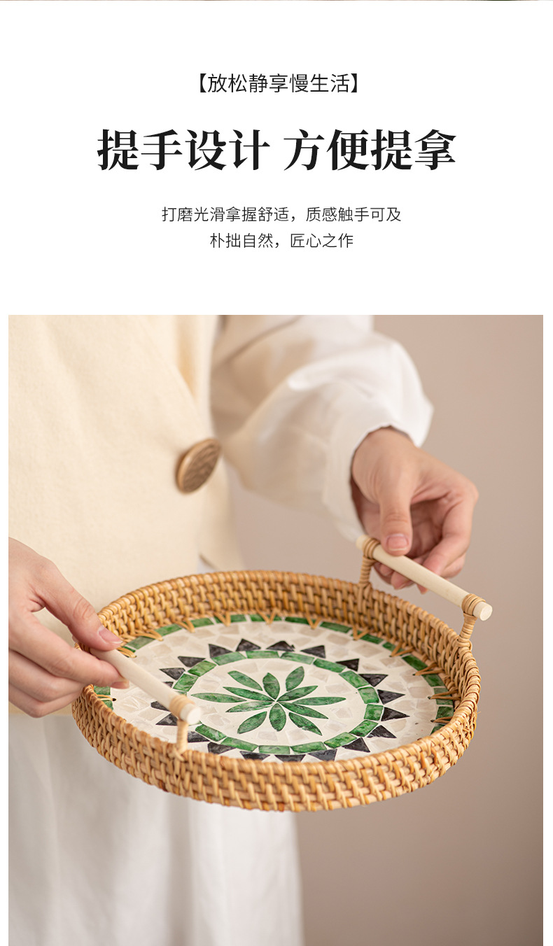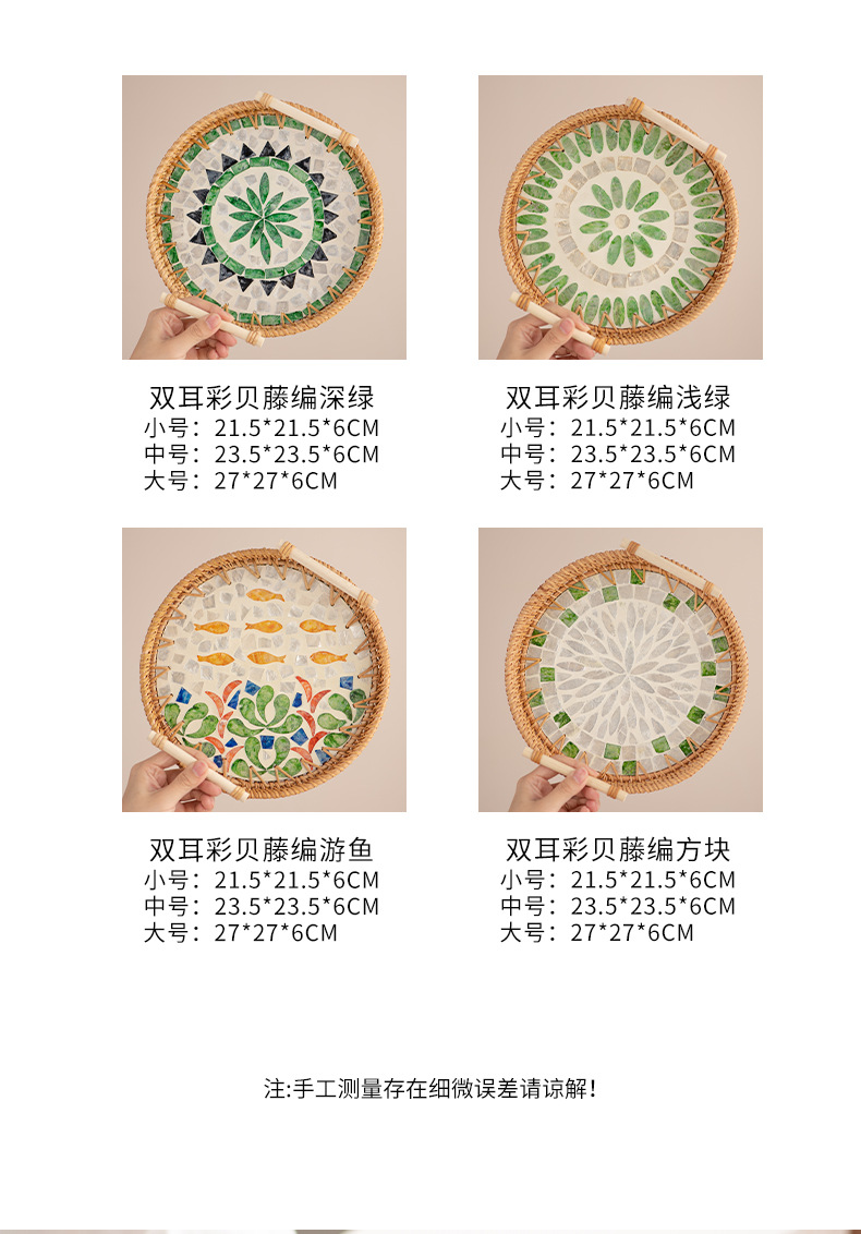 - Khay mây Việt Nam, khay đựng trái cây vỏ sò, giỏ ăn sáng dệt kiểu Scandinavian, giỏ bánh mì tre, giỏ đựng đồ ăn nhẹ sáng tạo
