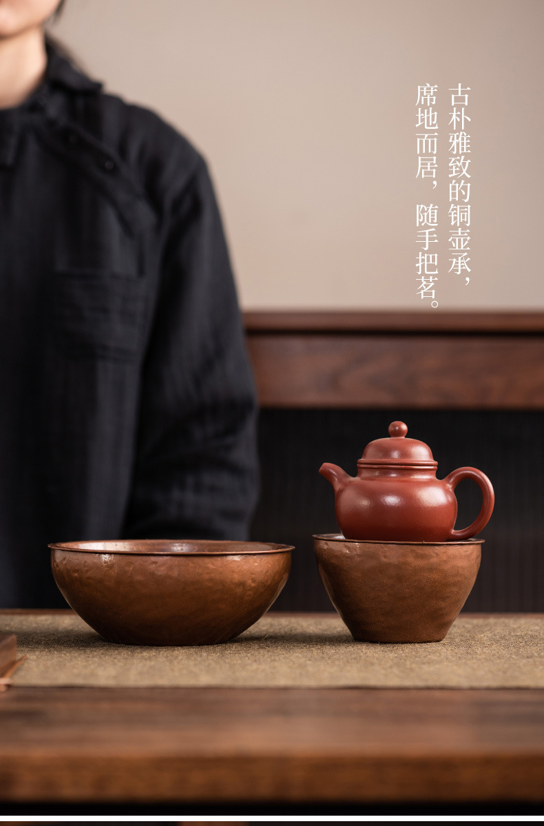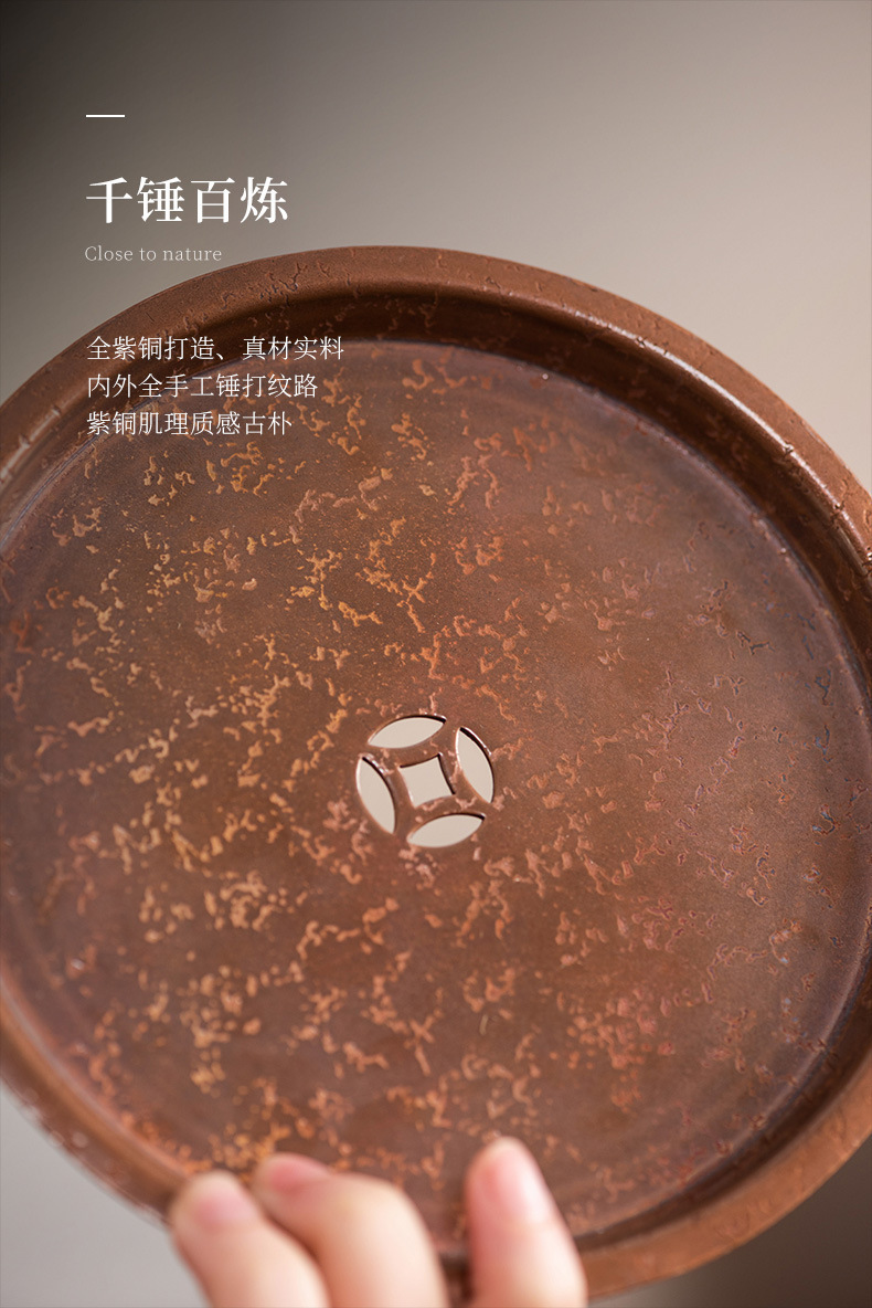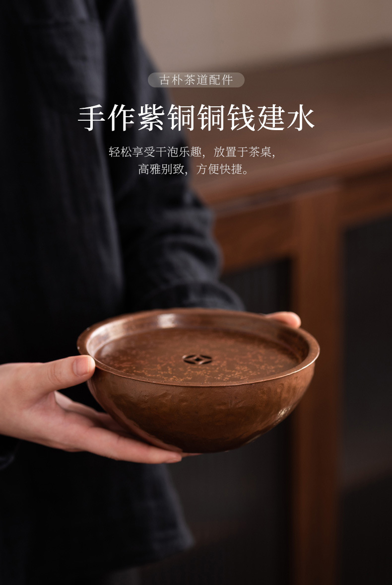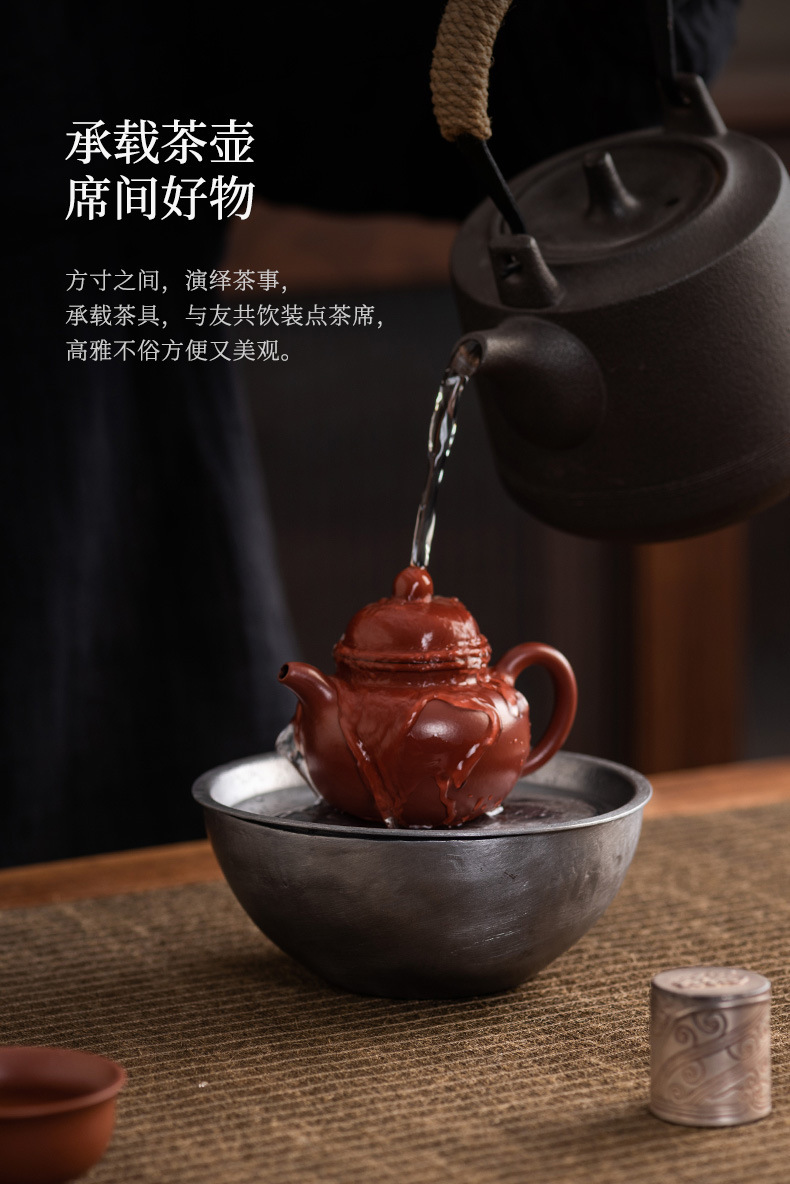 - Khay nhỏ xốp khô hình tròn bằng đồng, ấm thiếc cũ thủ công, bàn trà nhỏ đựng nước, khay ấm trà trữ nước gia dụng Jianshui