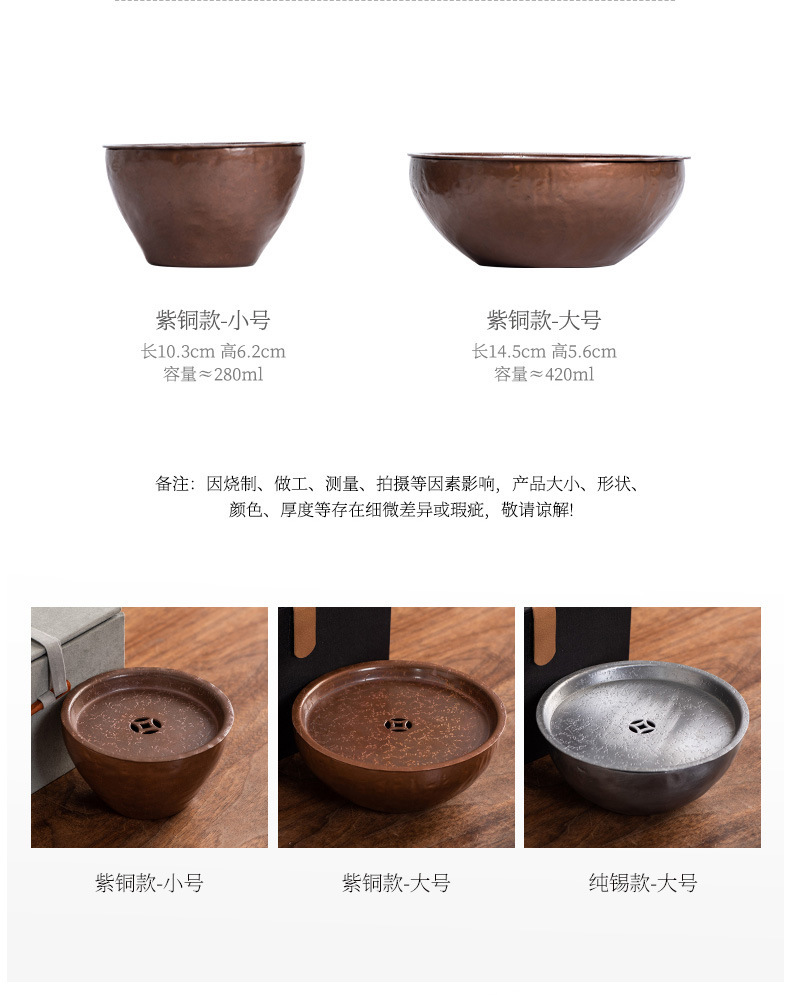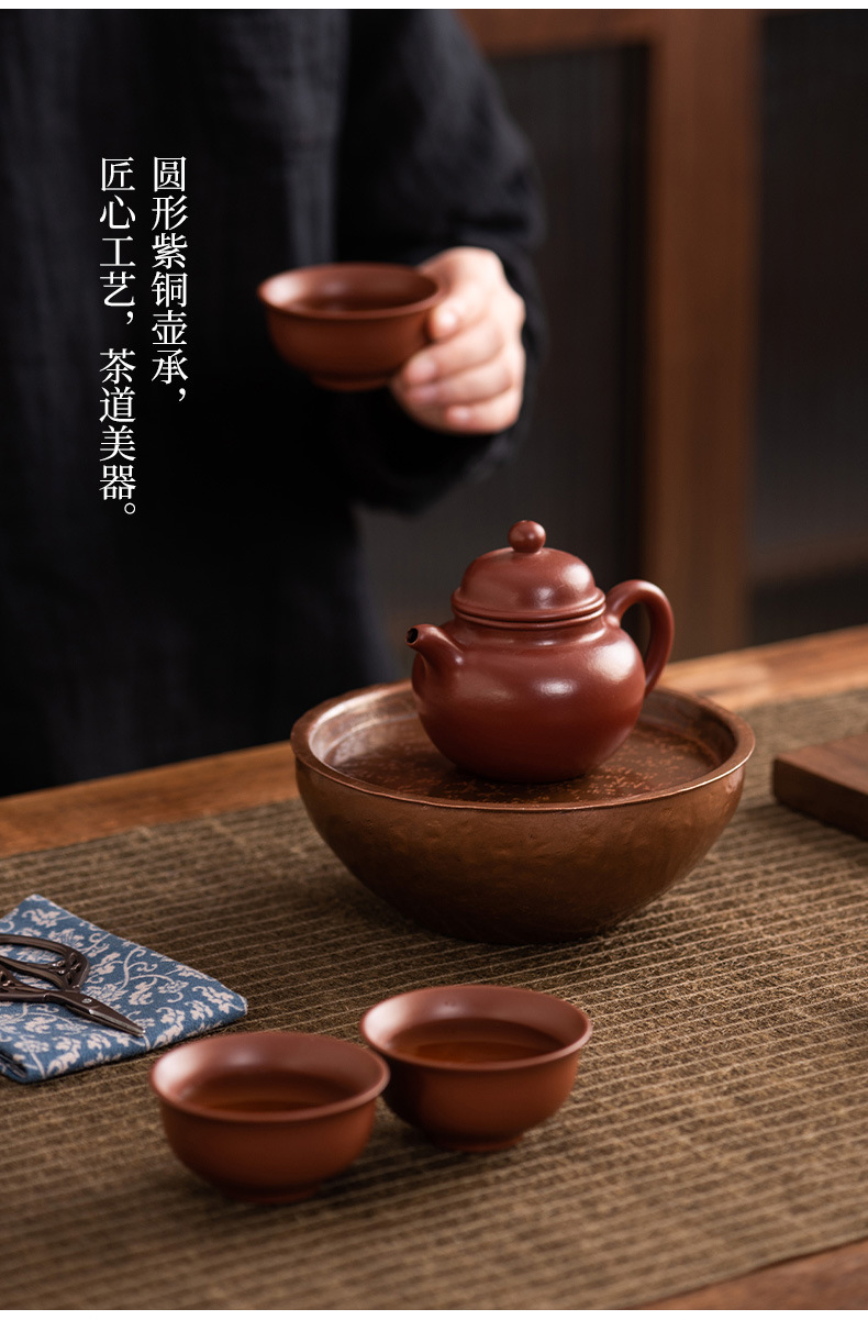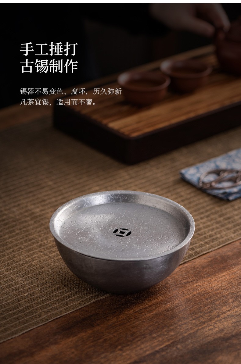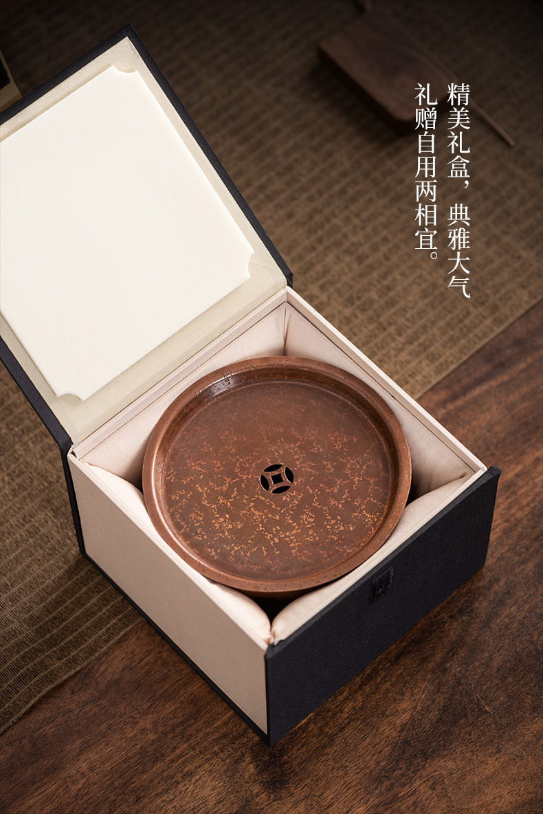 - Khay nhỏ xốp khô hình tròn bằng đồng, ấm thiếc cũ thủ công, bàn trà nhỏ đựng nước, khay ấm trà trữ nước gia dụng Jianshui