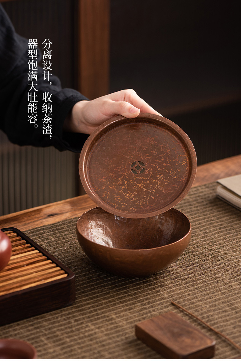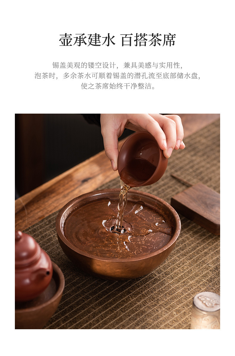 Khay nhỏ xốp khô hình tròn bằng đồng, ấm thiếc cũ thủ công, bàn trà nhỏ đựng nước, khay ấm trà trữ nước gia dụng Jianshui