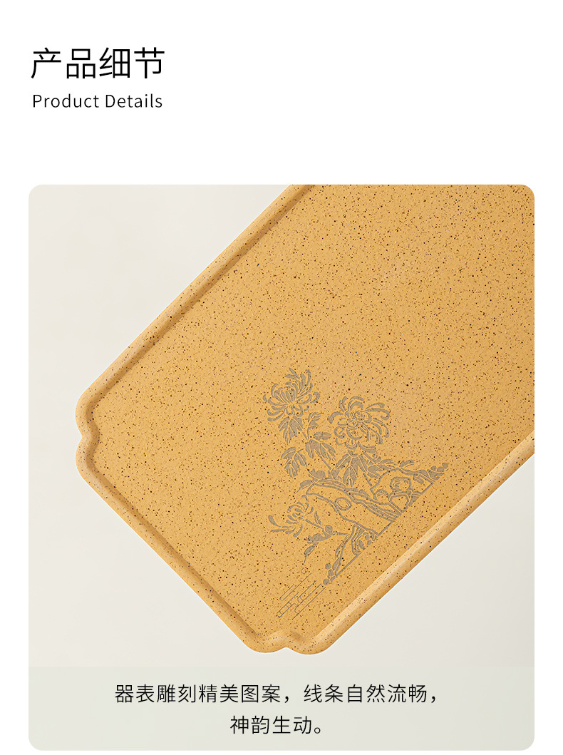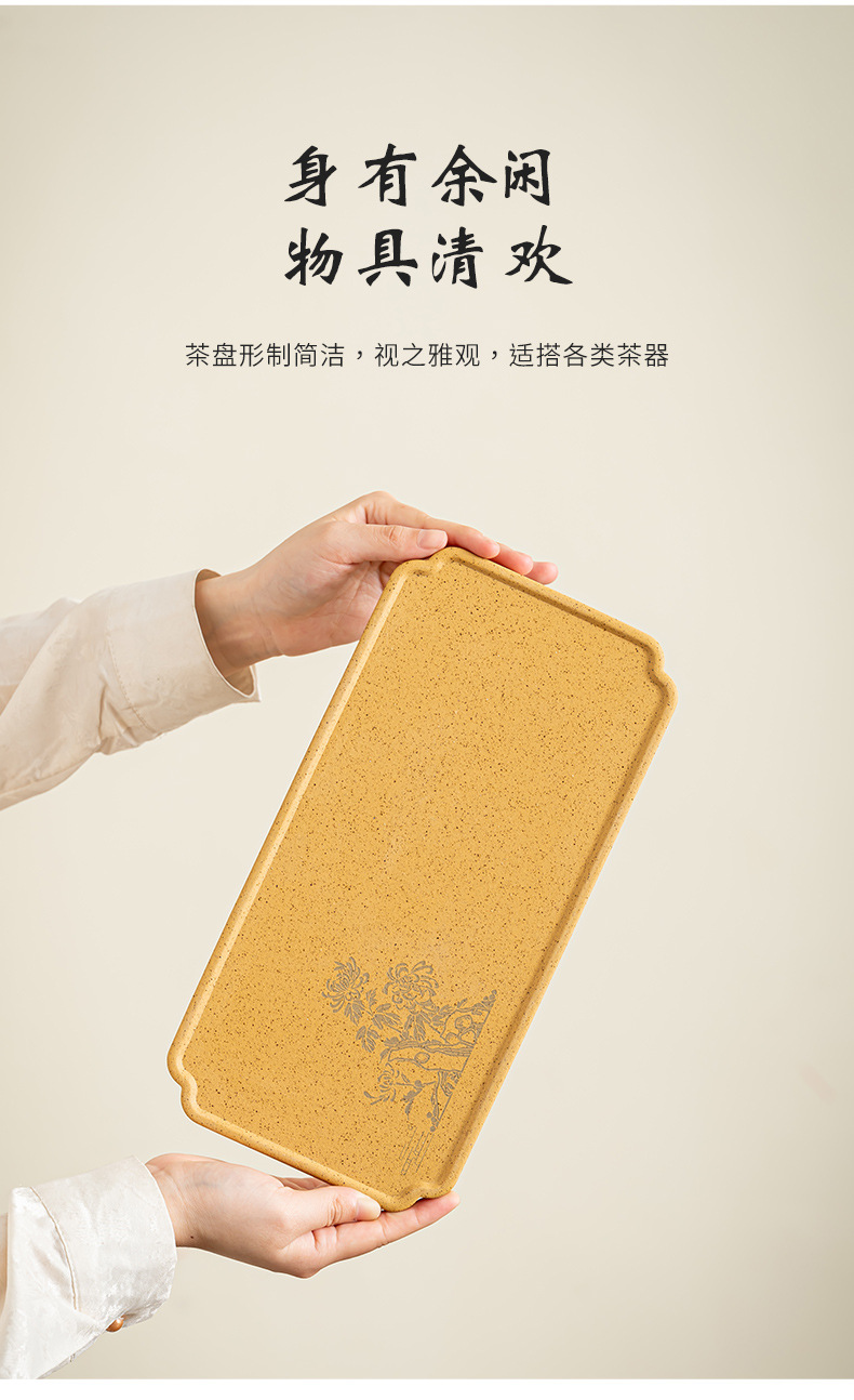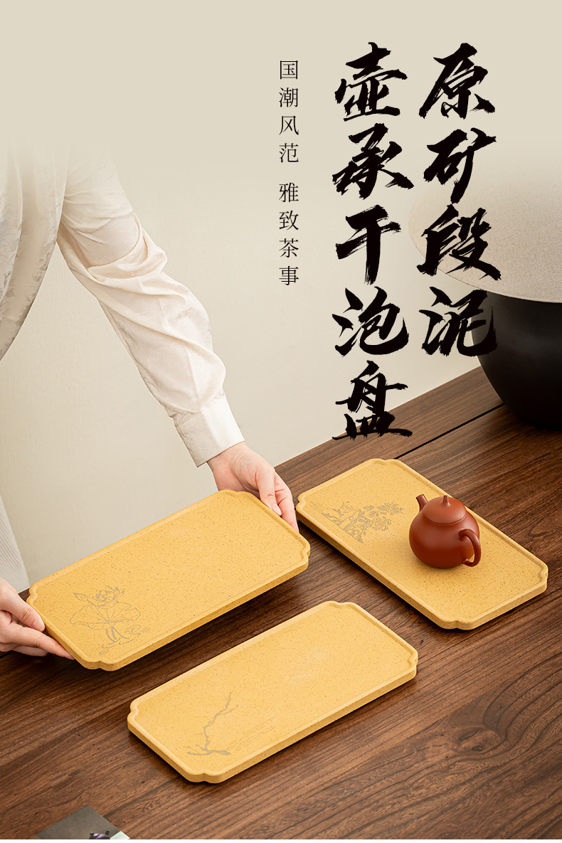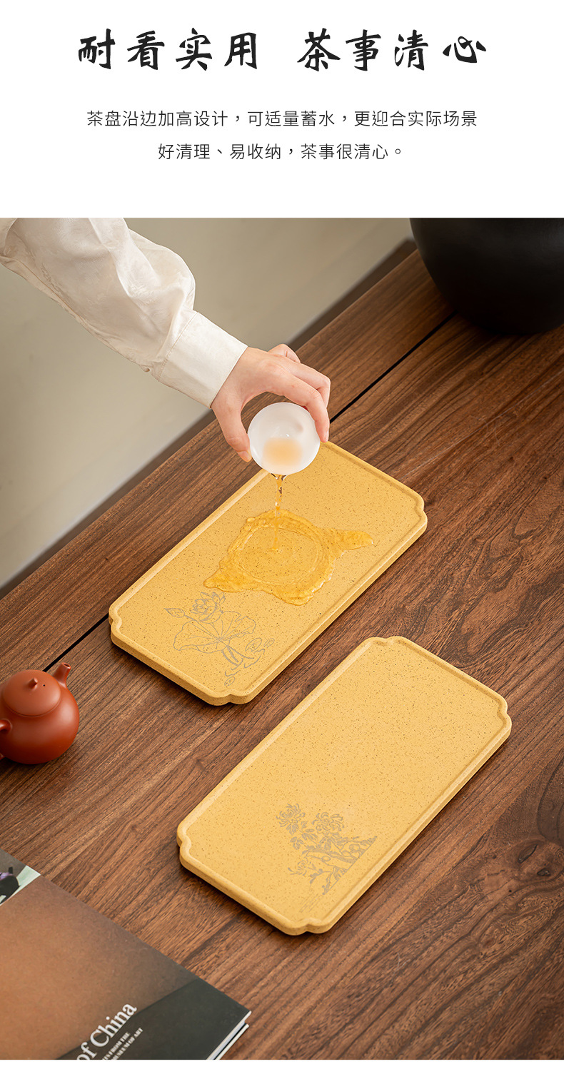 Khay pha khô bằng gốm đất sét thô khay pha trà hoa mận, phong lan, trúc cúc đơn giản khay trà hình chữ nhật gia dụng khay pha trà