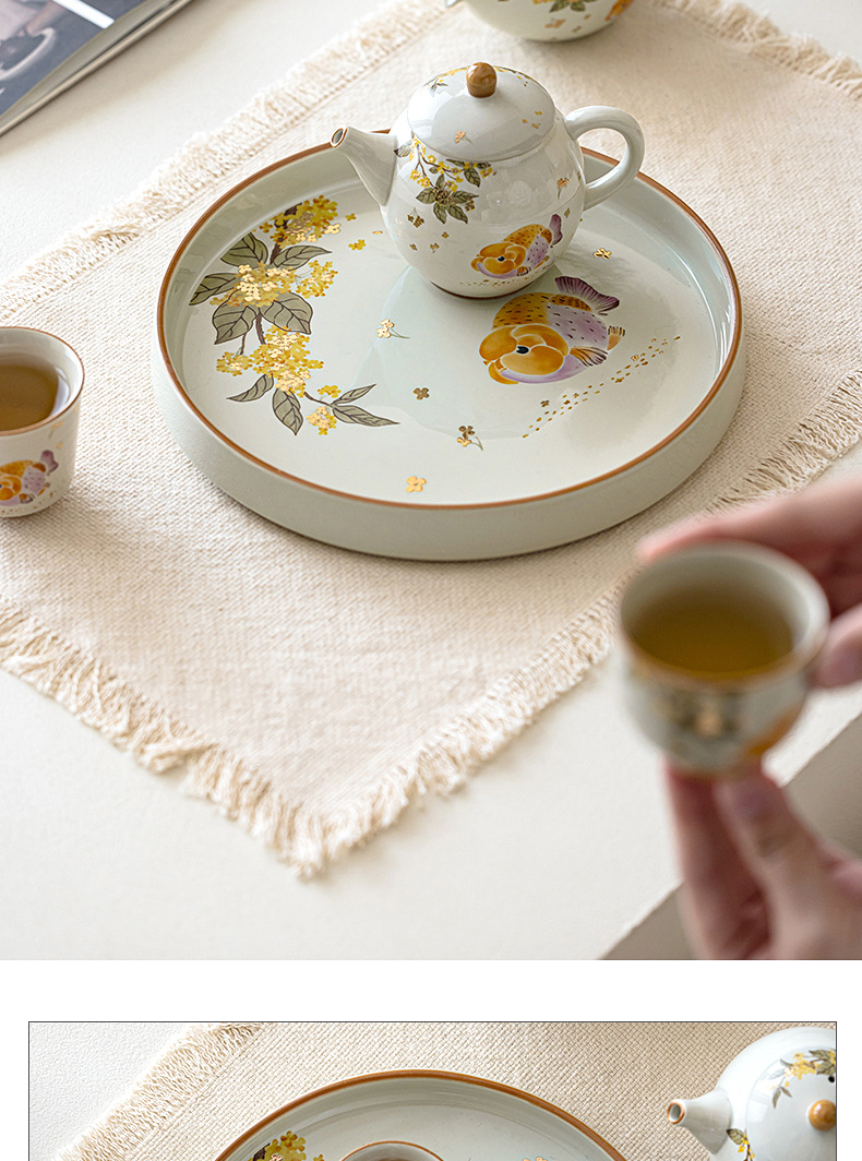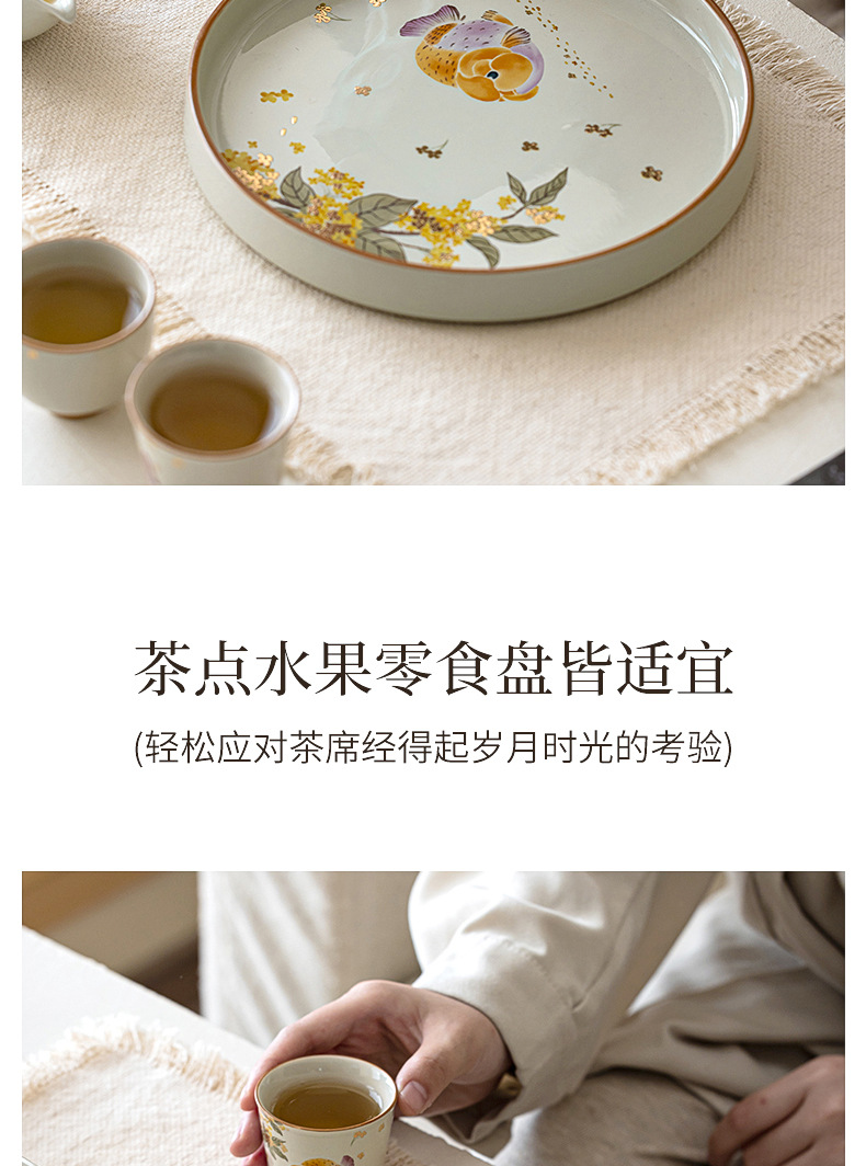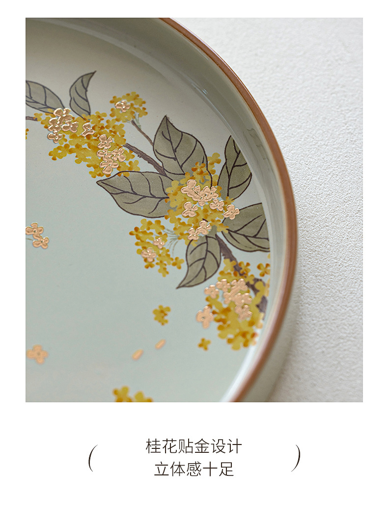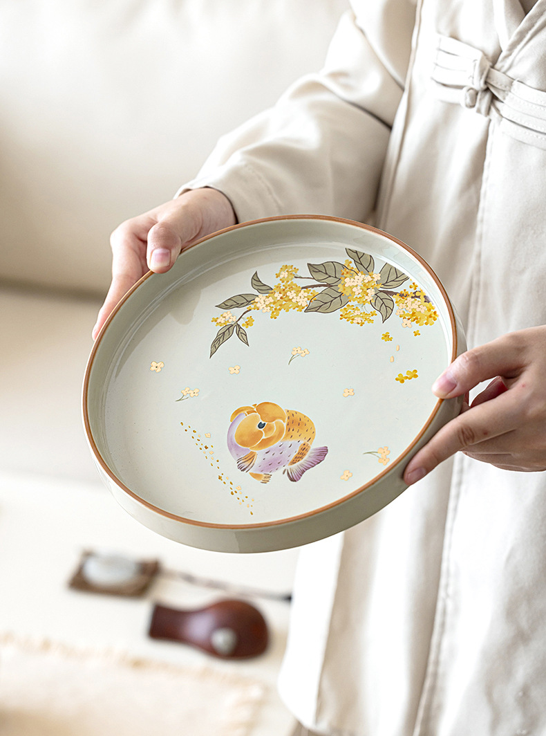 - Khay pha khô cá osmanthus vàng xám thực vật phong cách dân tộc khay trà hình tròn gốm sứ gia dụng khay trái cây kiểu Trung Quốc phụ kiện bộ trà Kung Fu