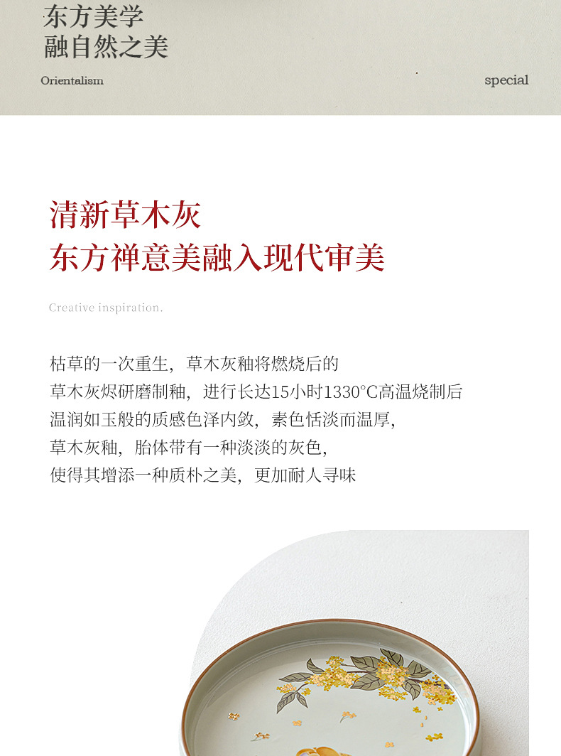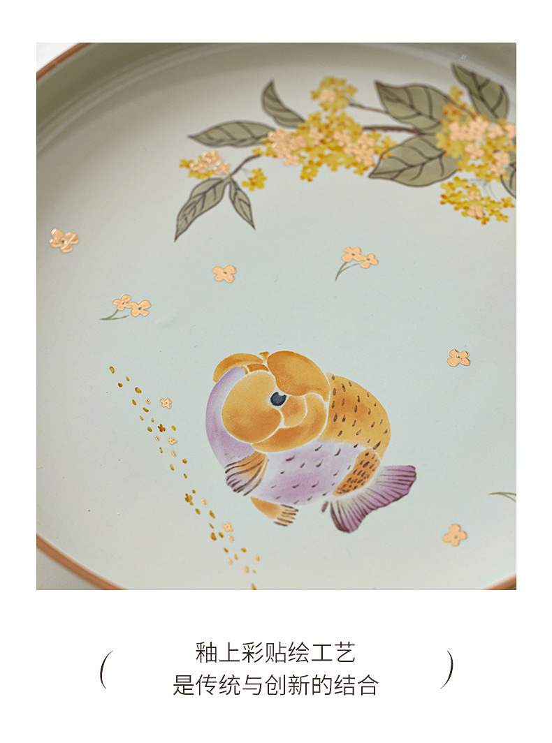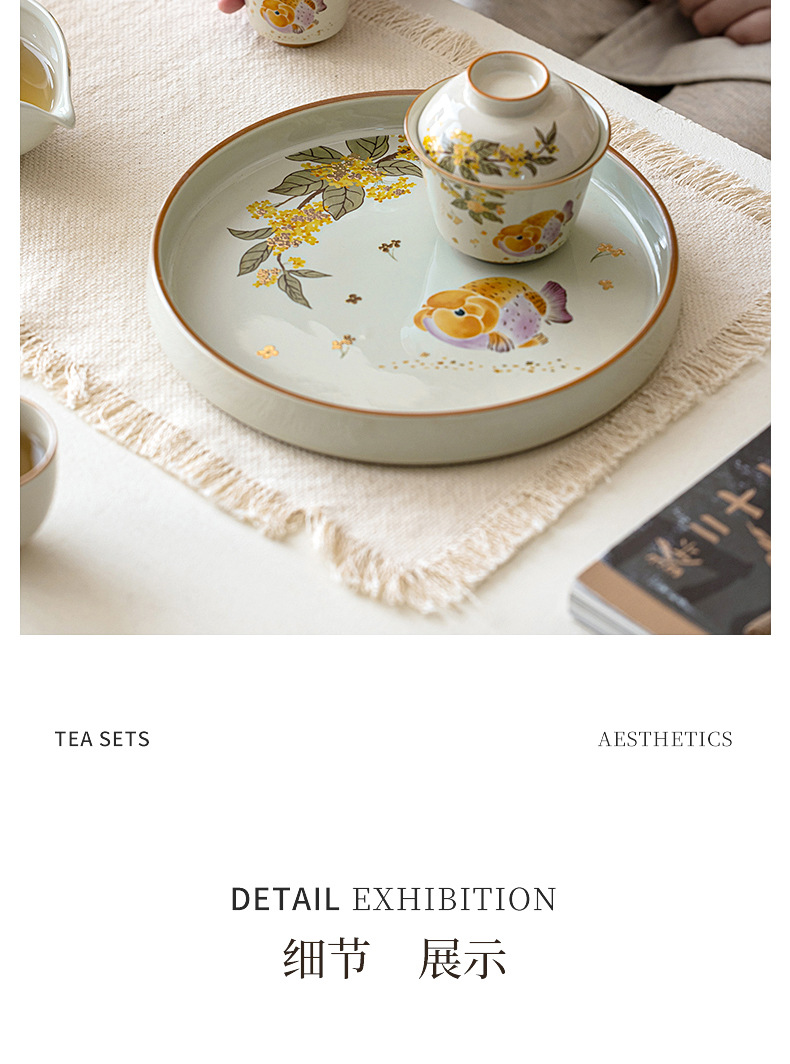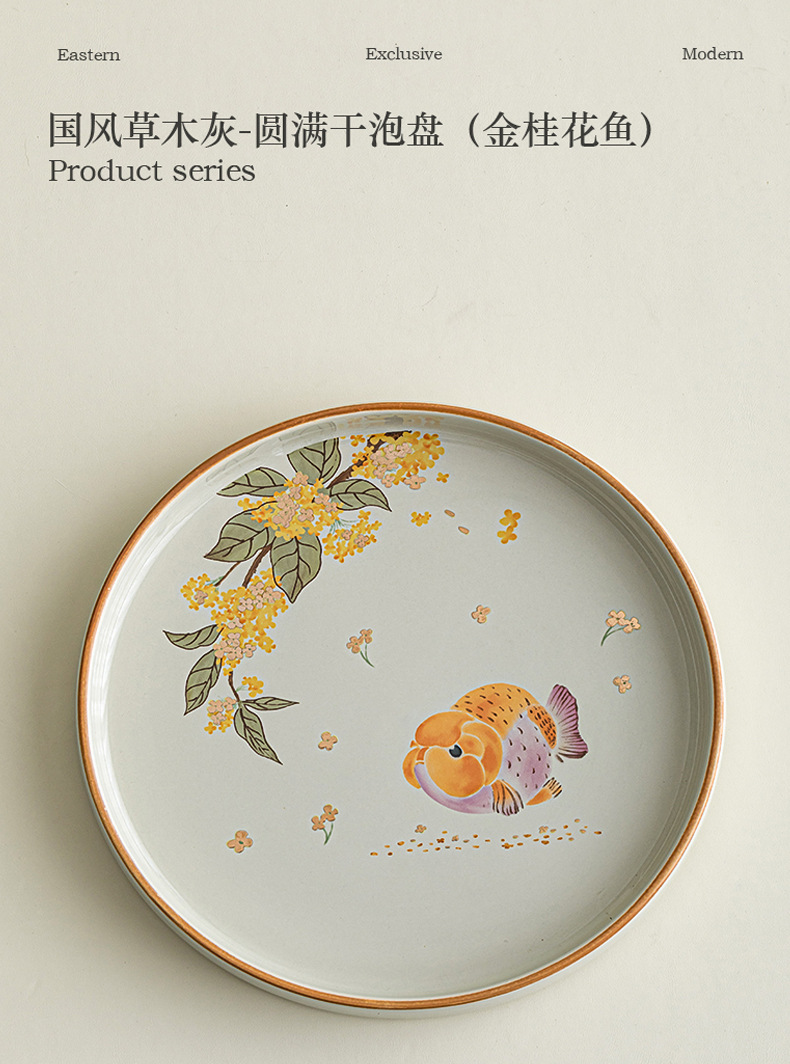 - Khay pha khô cá osmanthus vàng xám thực vật phong cách dân tộc khay trà hình tròn gốm sứ gia dụng khay trái cây kiểu Trung Quốc phụ kiện bộ trà Kung Fu