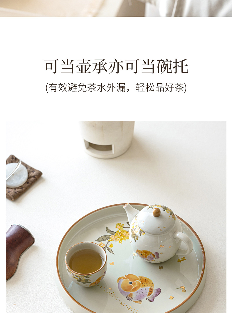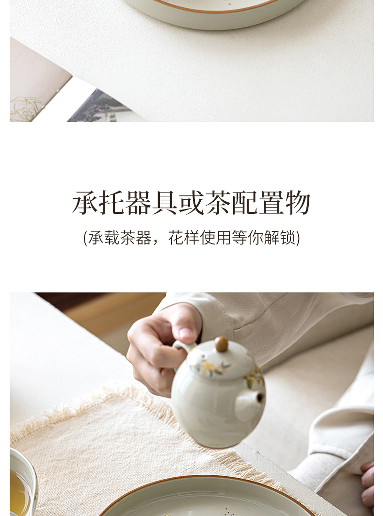 Khay pha khô cá osmanthus vàng xám thực vật phong cách dân tộc khay trà hình tròn gốm sứ gia dụng khay trái cây kiểu Trung Quốc phụ kiện bộ trà Kung Fu