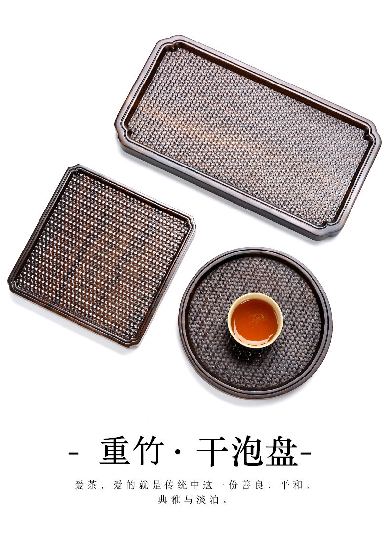 - Khay pha khô hình chữ nhật nặng tre Zen đệm cốc đơn giản đệm trà đạo phụ kiện bàn trà bàn pha khô sáng tạo