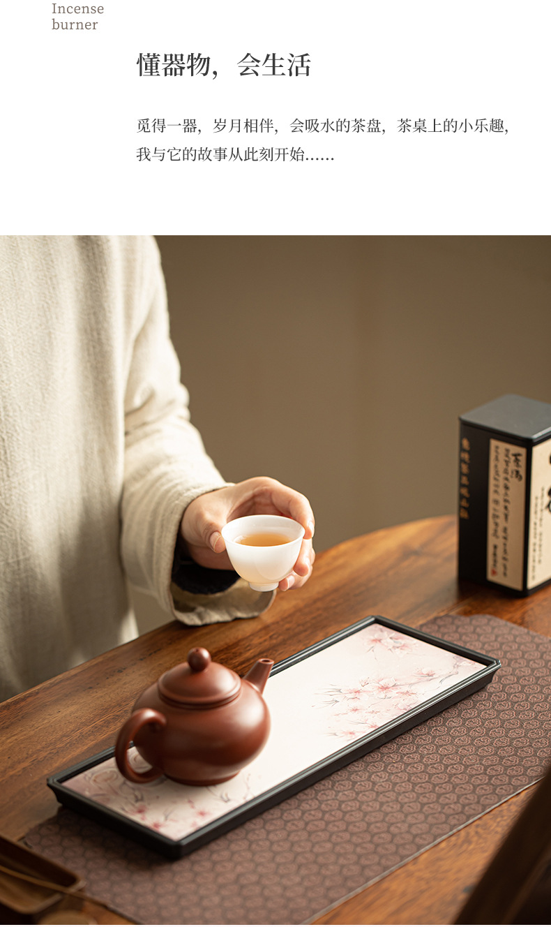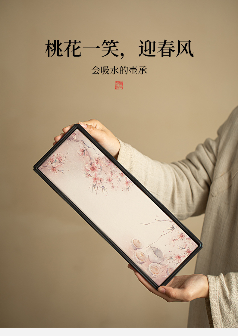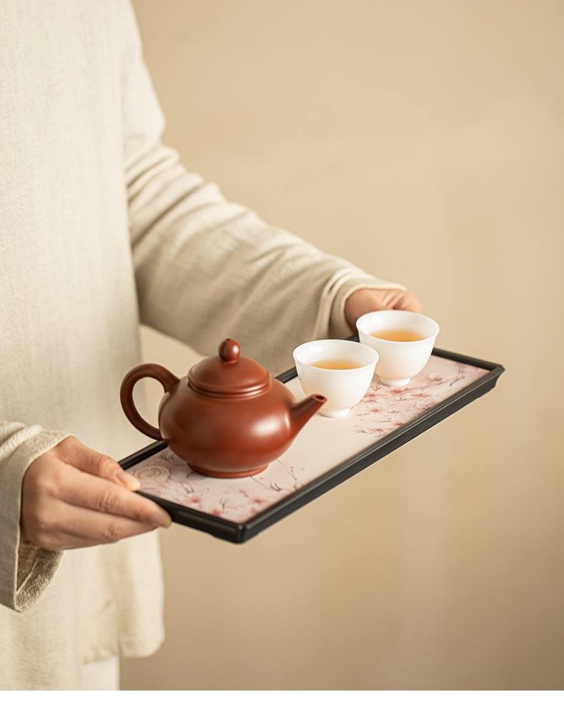 - Khay pha khô hoa đào khay trà nhỏ hình vuông dài đơn giản mini kiểu Trung Quốc khay trà hút nước sáng tạo khay thoát nước gia dụng