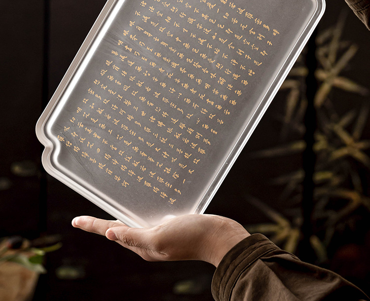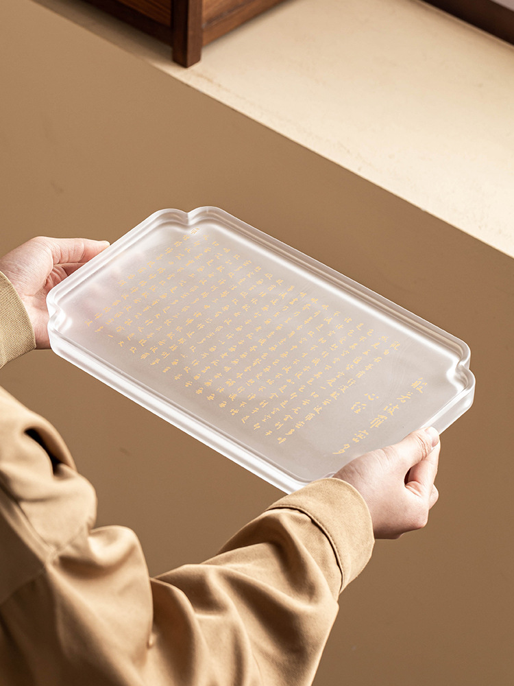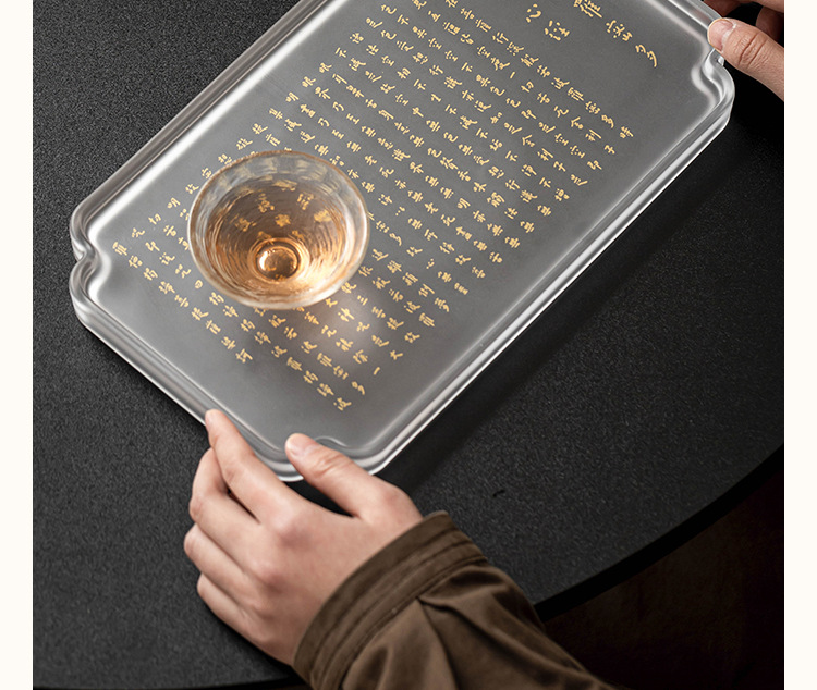 Khay pha khô men màu khay trà Bát nhã ba la mật đa tâm kinh khay để ráo nước thiền kiểu Trung Quốc loại nhỏ, bàn trà đơn giản