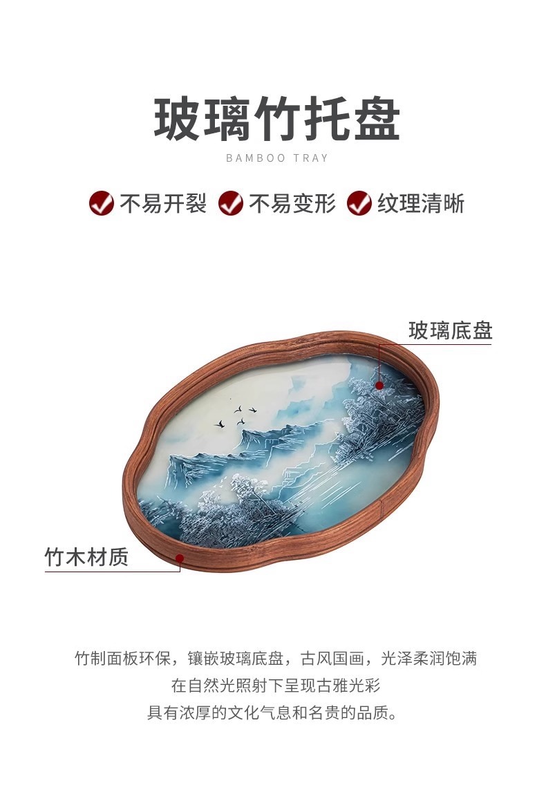 Khay pha khô thủy tinh Thu hải đường, bàn pha trà loại nhỏ gia dụng, khay pha trà văn phòng phòng khách, khay trà, Bộ trà Kung Fu