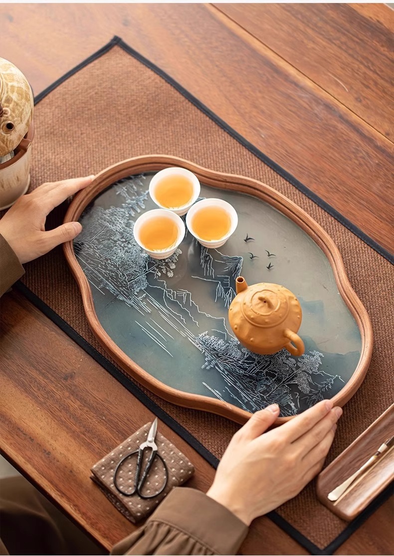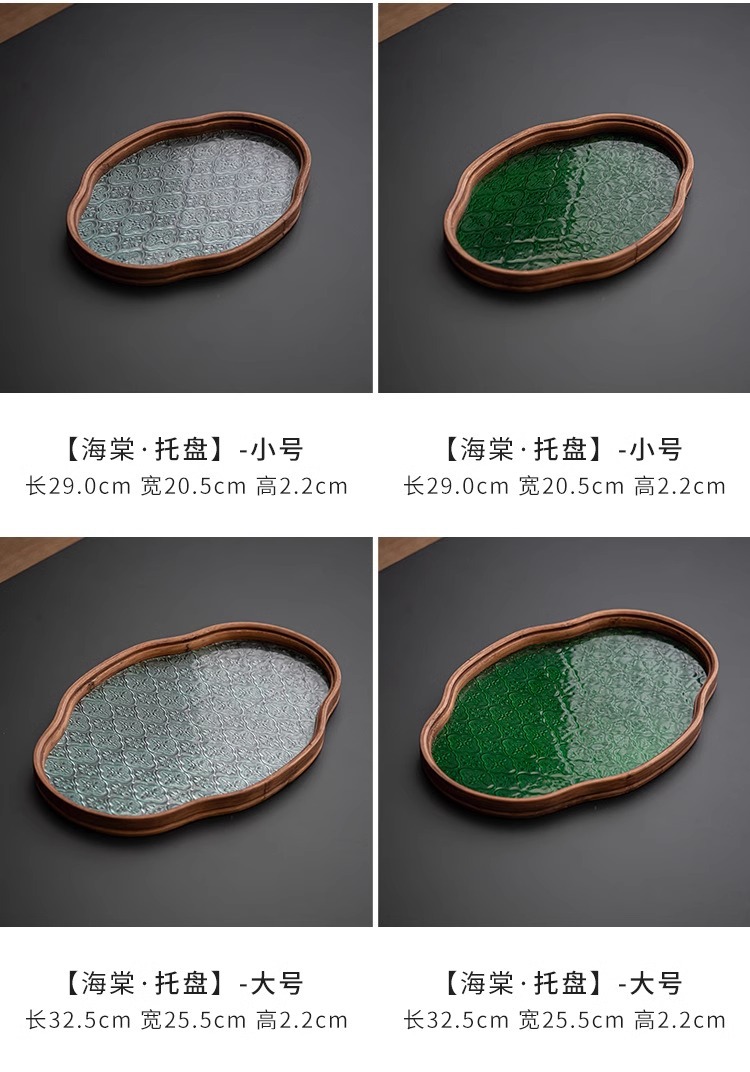 - Khay pha khô thủy tinh Thu hải đường, bàn pha trà loại nhỏ gia dụng, khay pha trà văn phòng phòng khách, khay trà, Bộ trà Kung Fu