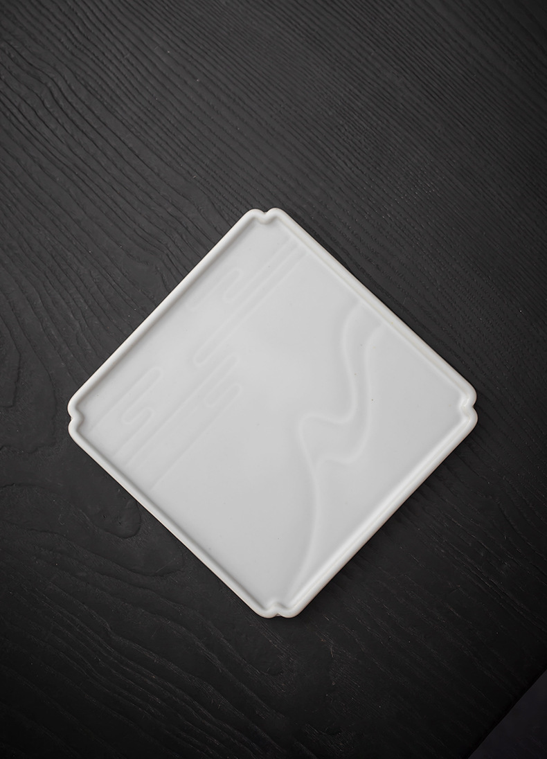 Khay pha trà khô gốm sứ khay đựng trà gia dụng bàn trà vuông nhỏ khay trà bàn pha trà trắng cổ điển bàn pha trà khô