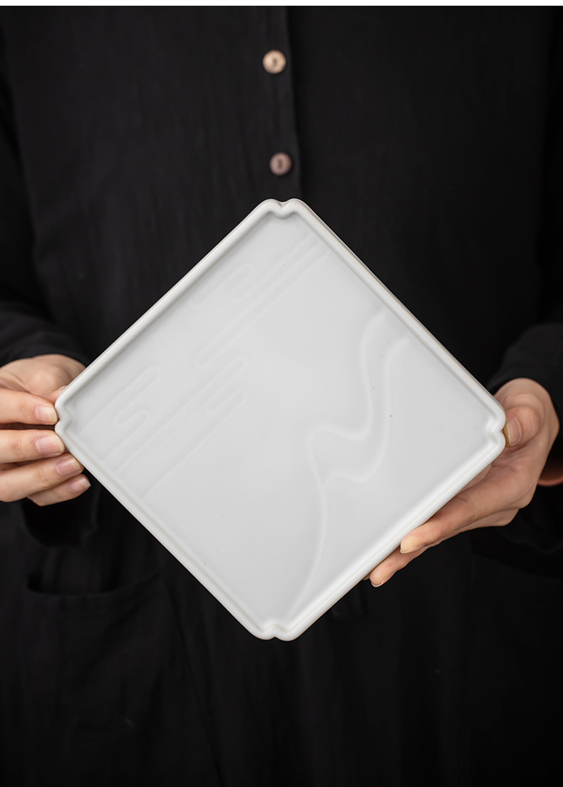 - Khay pha trà khô gốm sứ khay đựng trà gia dụng bàn trà vuông nhỏ khay trà bàn pha trà trắng cổ điển bàn pha trà khô