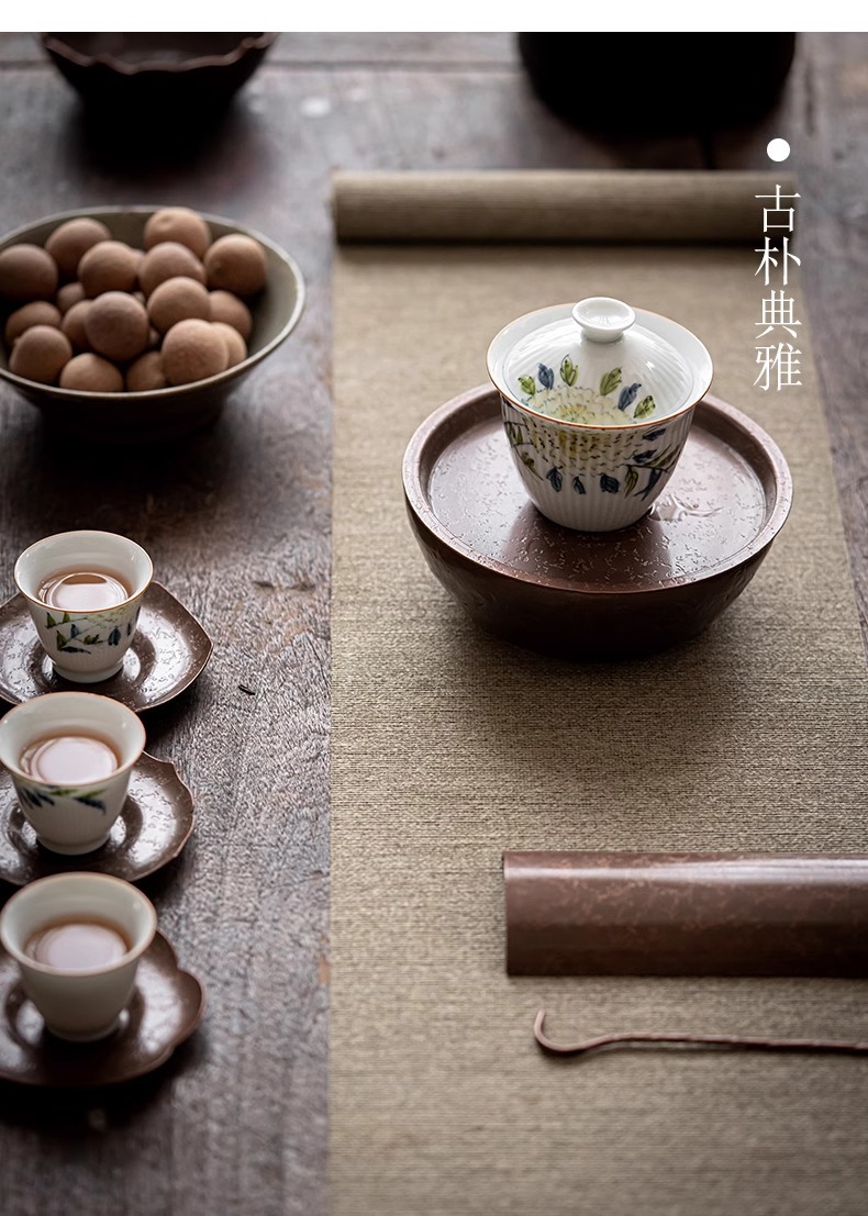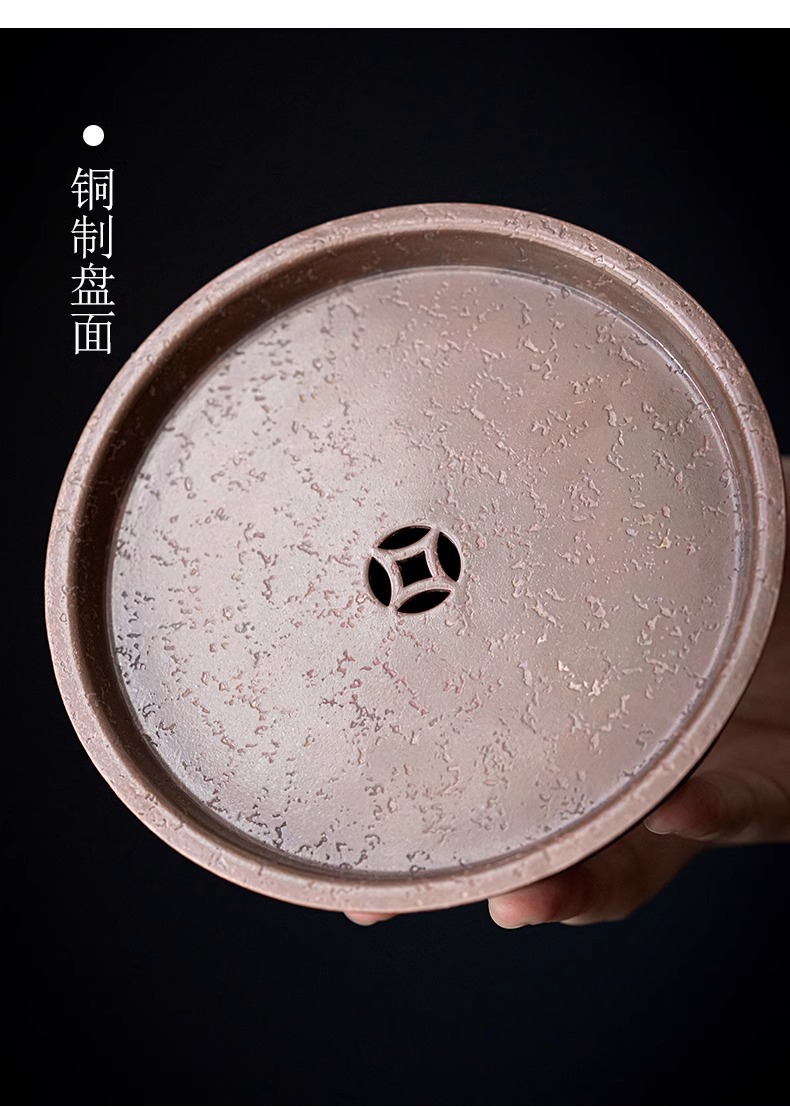 Khay tạo bọt khô đồng Kiến Thủy thủ công kiểu Nhật Bản lót chậu đựng nước rửa chén đựng nước Phụ Kiện Bộ trà Kung Fu gia dụng