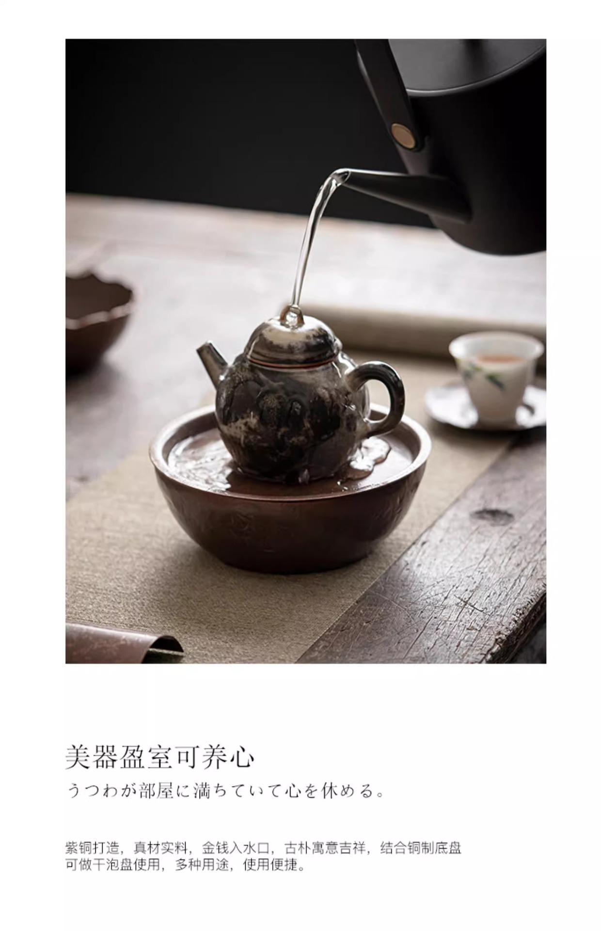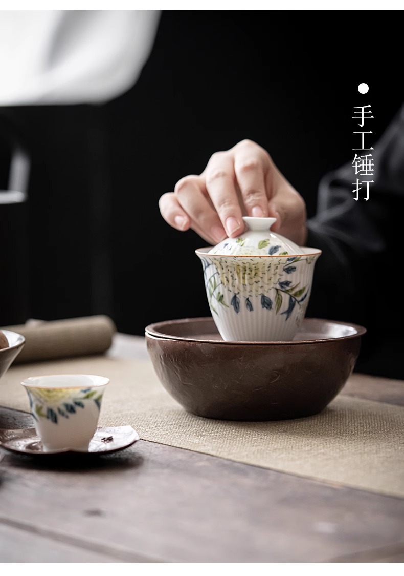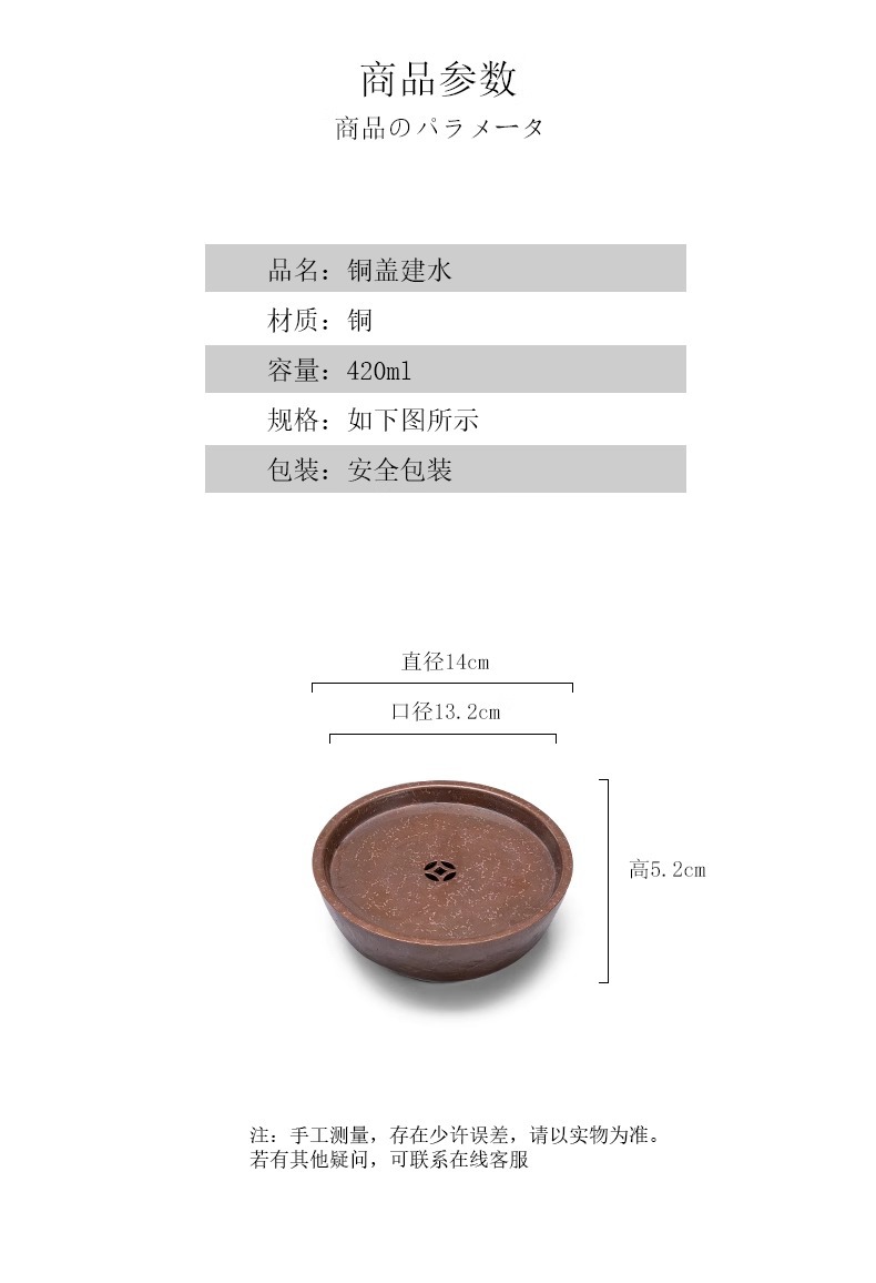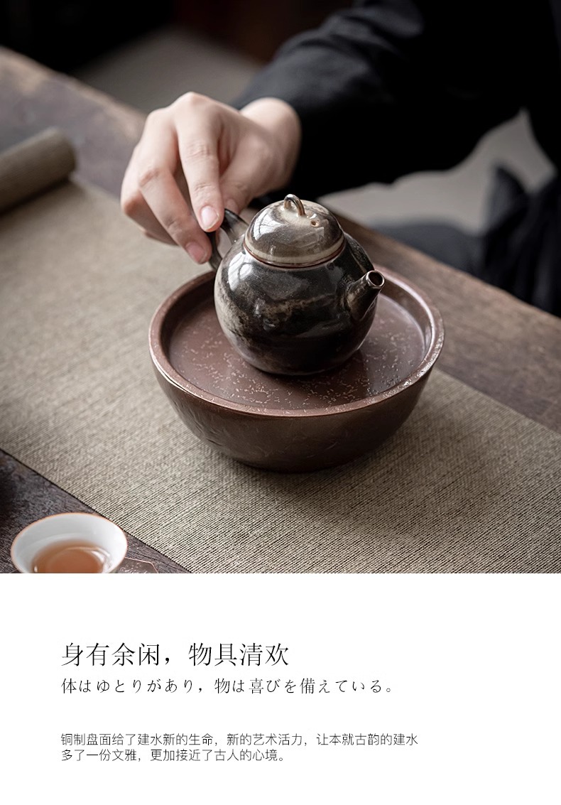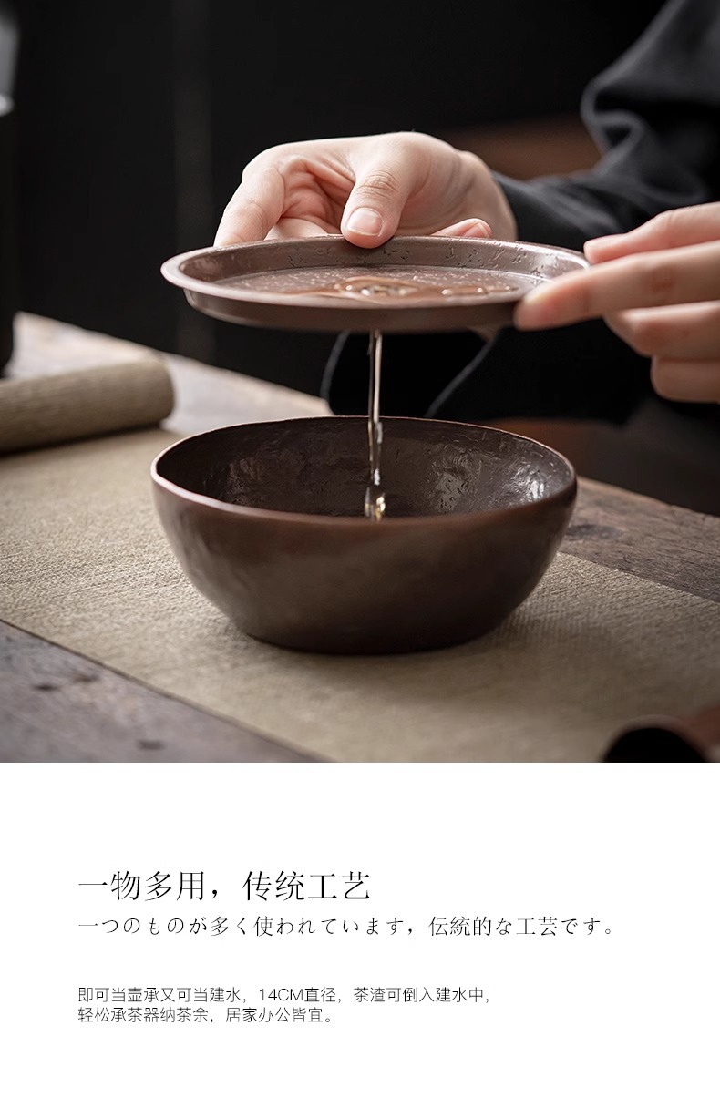 - Khay tạo bọt khô đồng Kiến Thủy thủ công kiểu Nhật Bản lót chậu đựng nước rửa chén đựng nước Phụ Kiện Bộ trà Kung Fu gia dụng