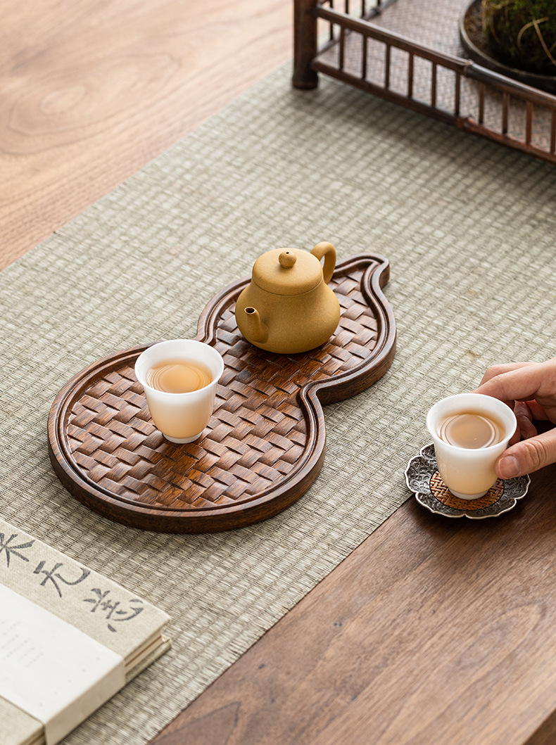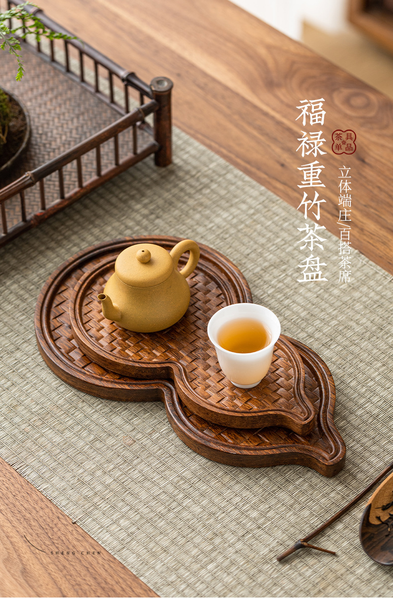 Khay trà bầu trúc Phúc Lộc, khay đựng ấm, bàn pha khô cỡ nhỏ, dụng cụ pha trà Kungfu gia dụng, phụ kiện Khay trà