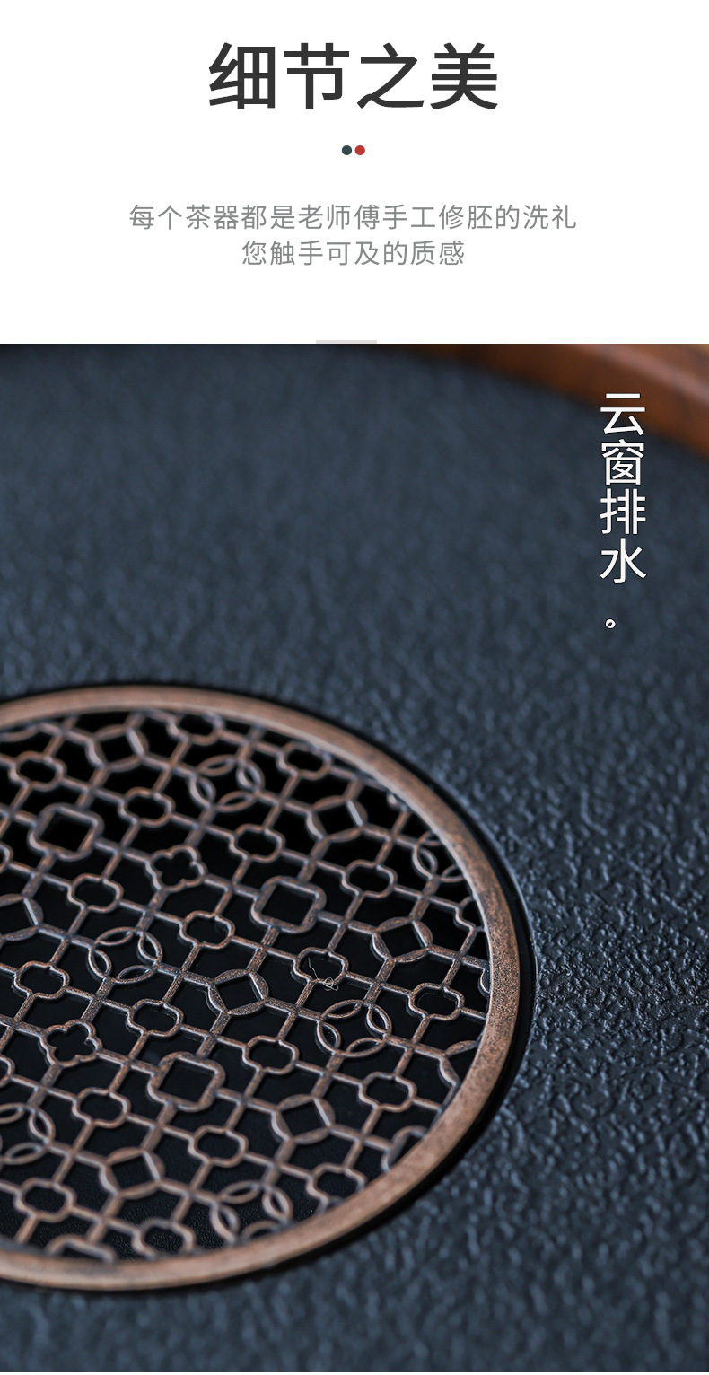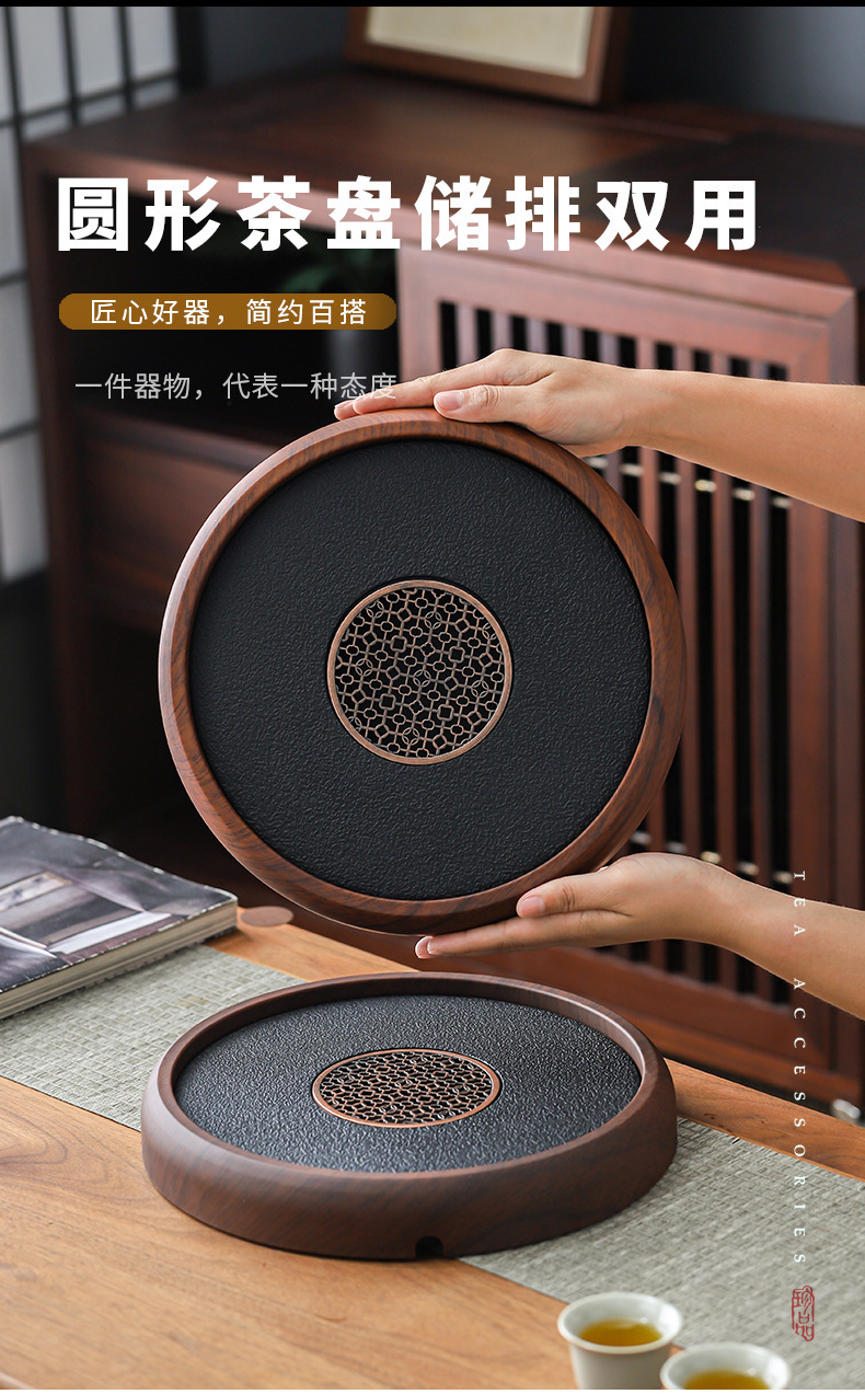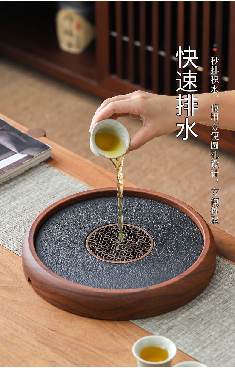 - Khay trà gia dụng kiểu mới kiểu Trung Quốc khay pha khô bằng đá phiến khay trà gỗ nguyên khối khay trà bộ trà kungfu thoát nước