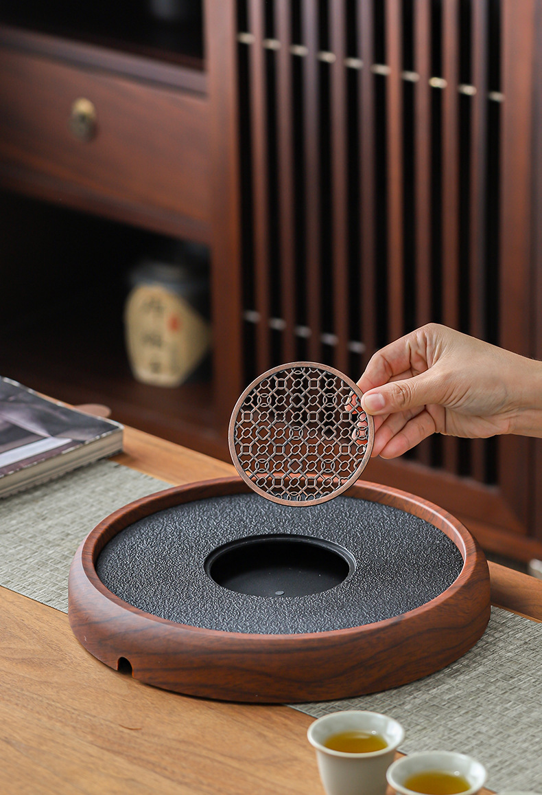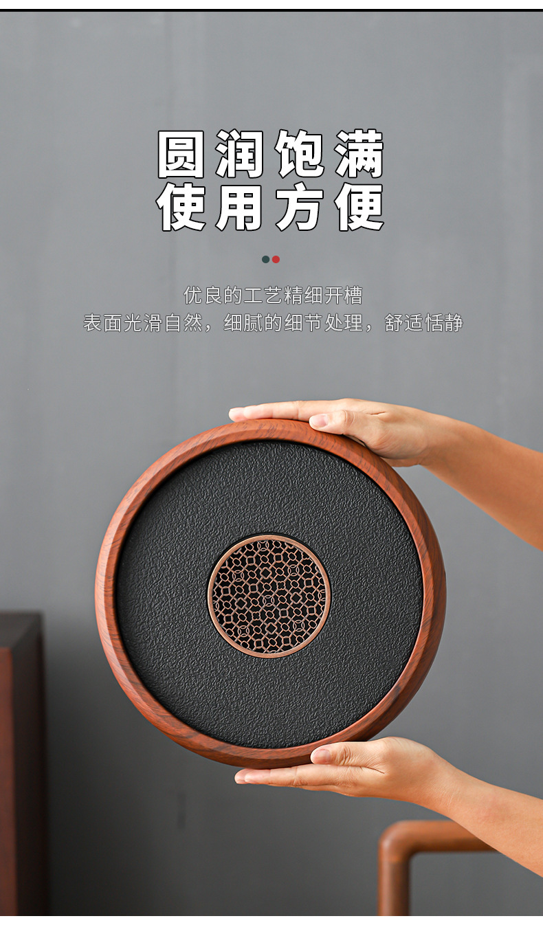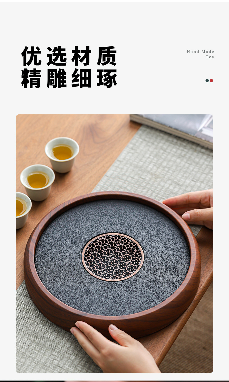 - Khay trà gia dụng kiểu mới kiểu Trung Quốc khay pha khô bằng đá phiến khay trà gỗ nguyên khối khay trà bộ trà kungfu thoát nước