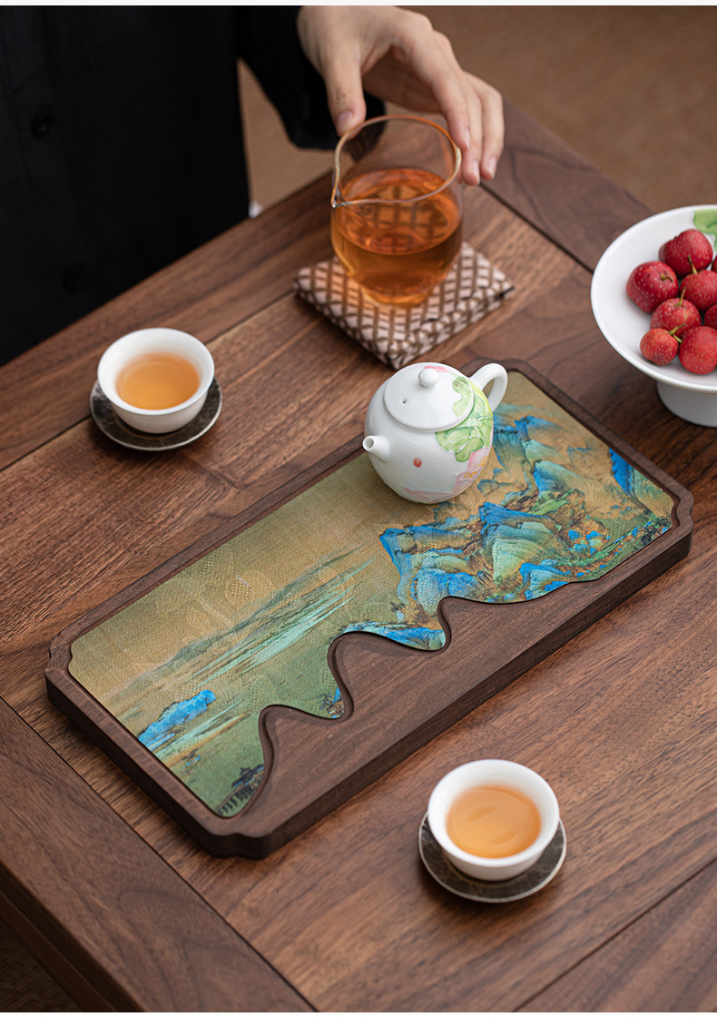 - Khay trà giả gỗ óc chó, khay đựng trà khô cổ điển kiểu Trung Quốc, khay đựng trà loại nhỏ gia dụng, bộ trà Kung Fu mẫu mới