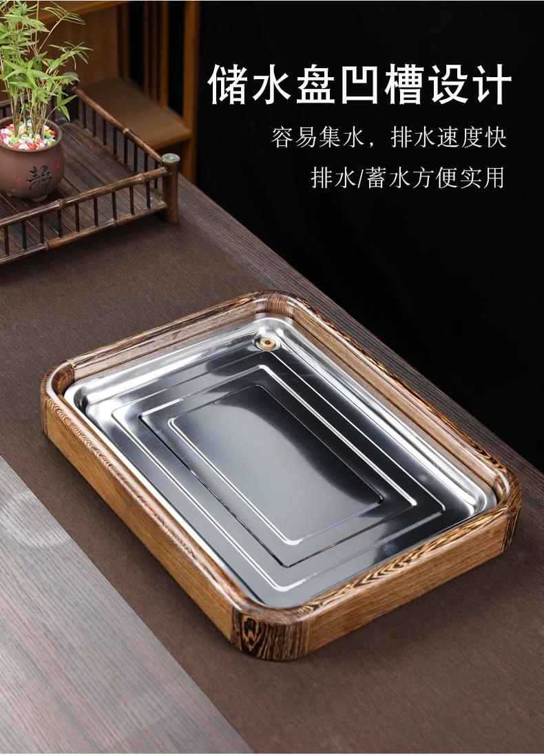 Khay trà gỗ nguyên khối gỗ trắc, khay pha khô cao cấp cỡ nhỏ gia dụng, khay trà Kung Fu, bàn trà thoát nước, biển trà một người