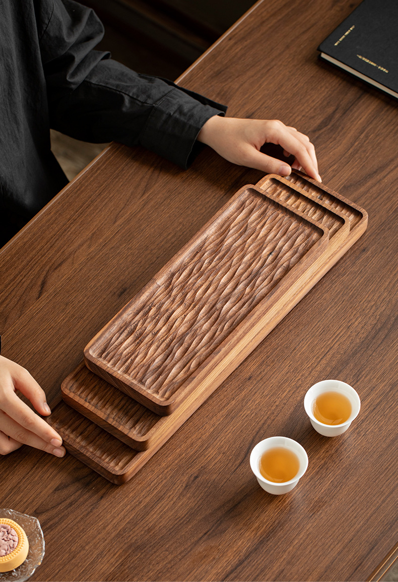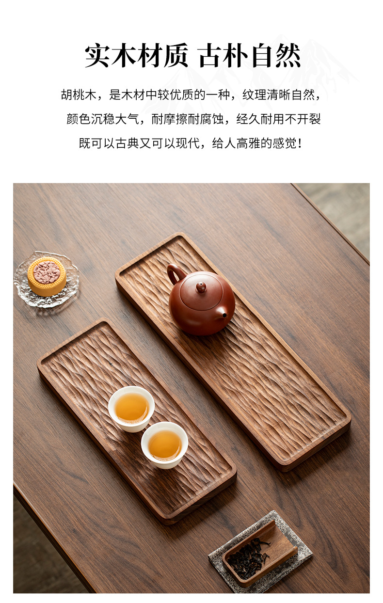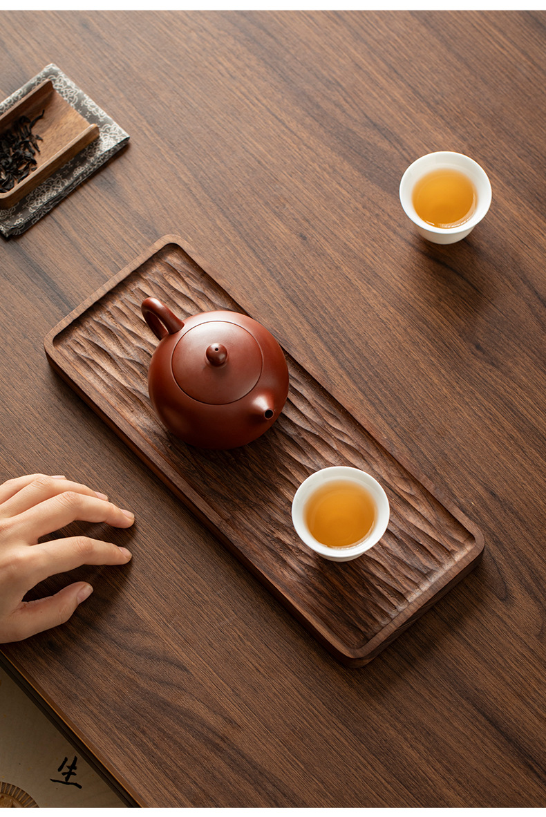 - Khay trà gỗ nguyên khối kiểu Trung Quốc, khay pha khô kiểu Nhật đơn giản, bàn trà nhỏ, bộ trà Kung Fu hiện đại gỗ óc chó đen