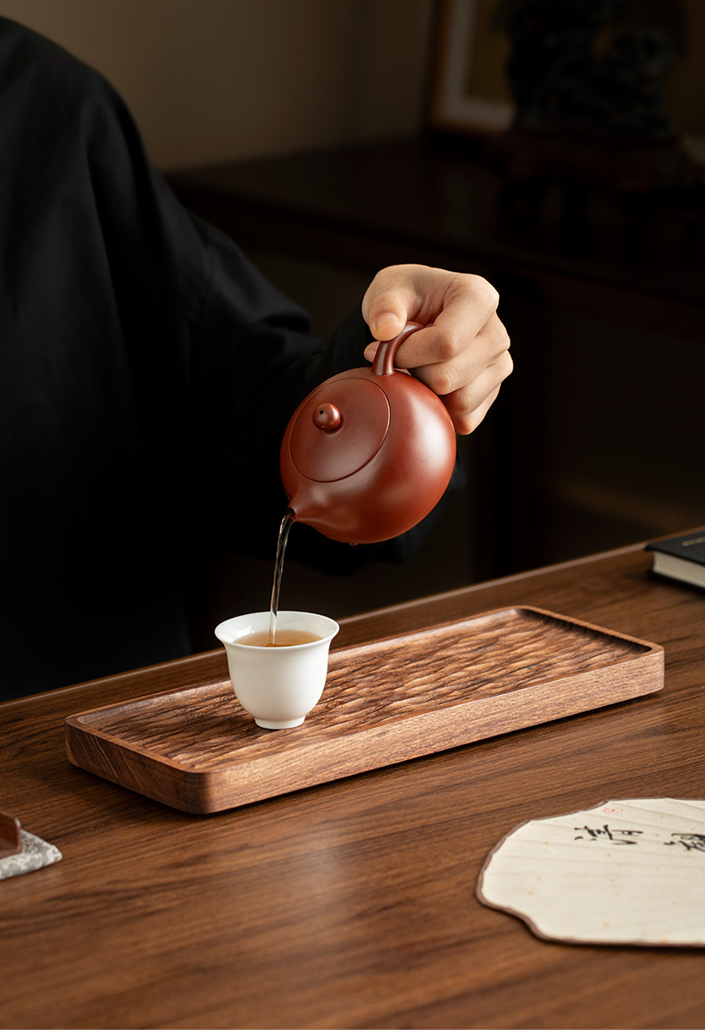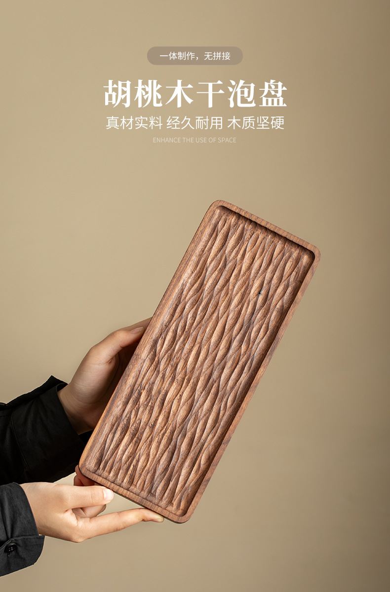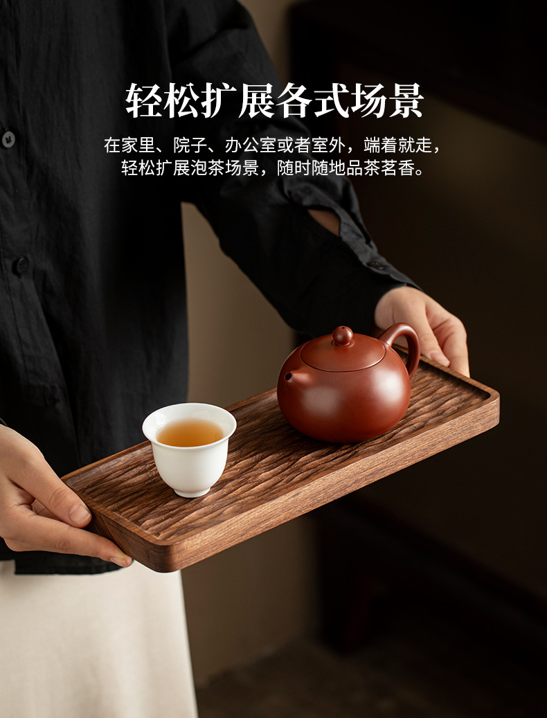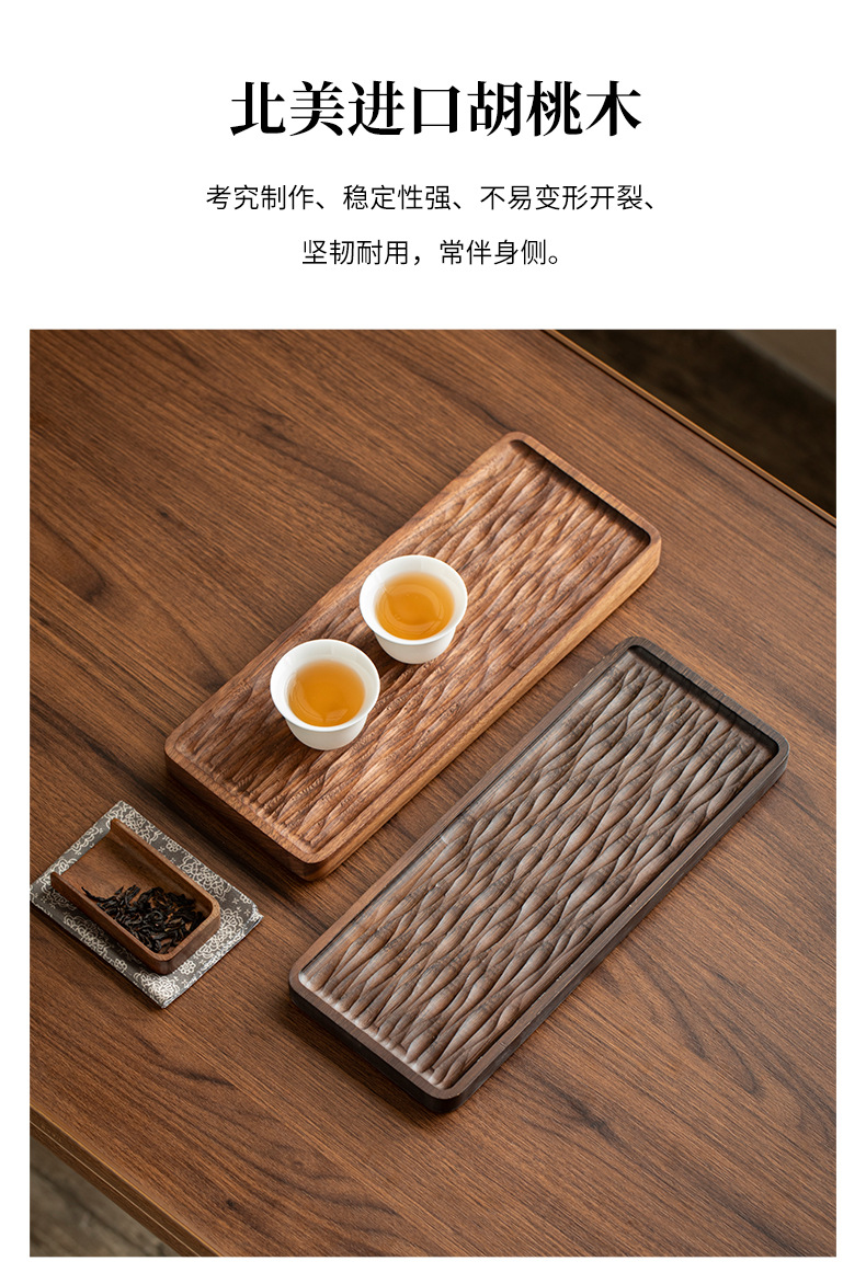 - Khay trà gỗ nguyên khối kiểu Trung Quốc, khay pha khô kiểu Nhật đơn giản, bàn trà nhỏ, bộ trà Kung Fu hiện đại gỗ óc chó đen
