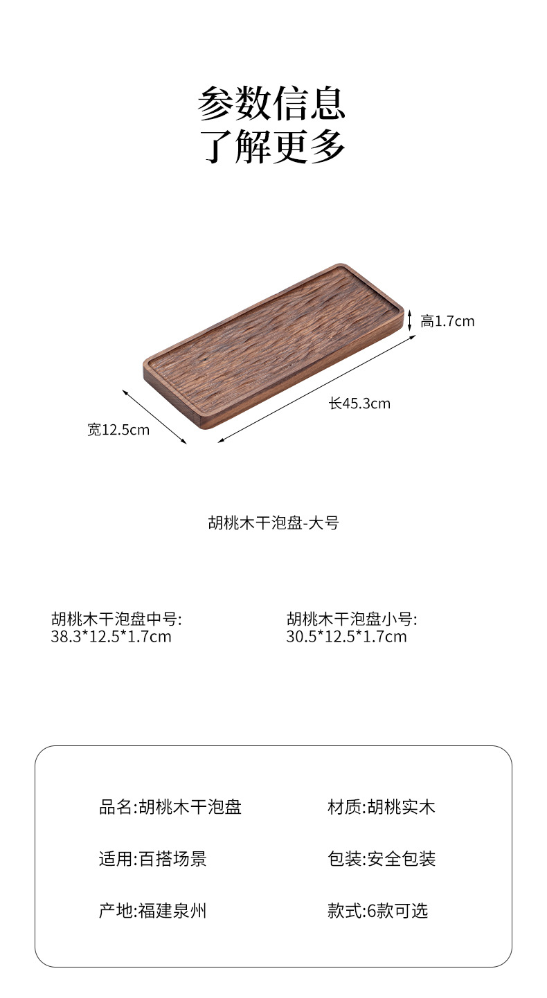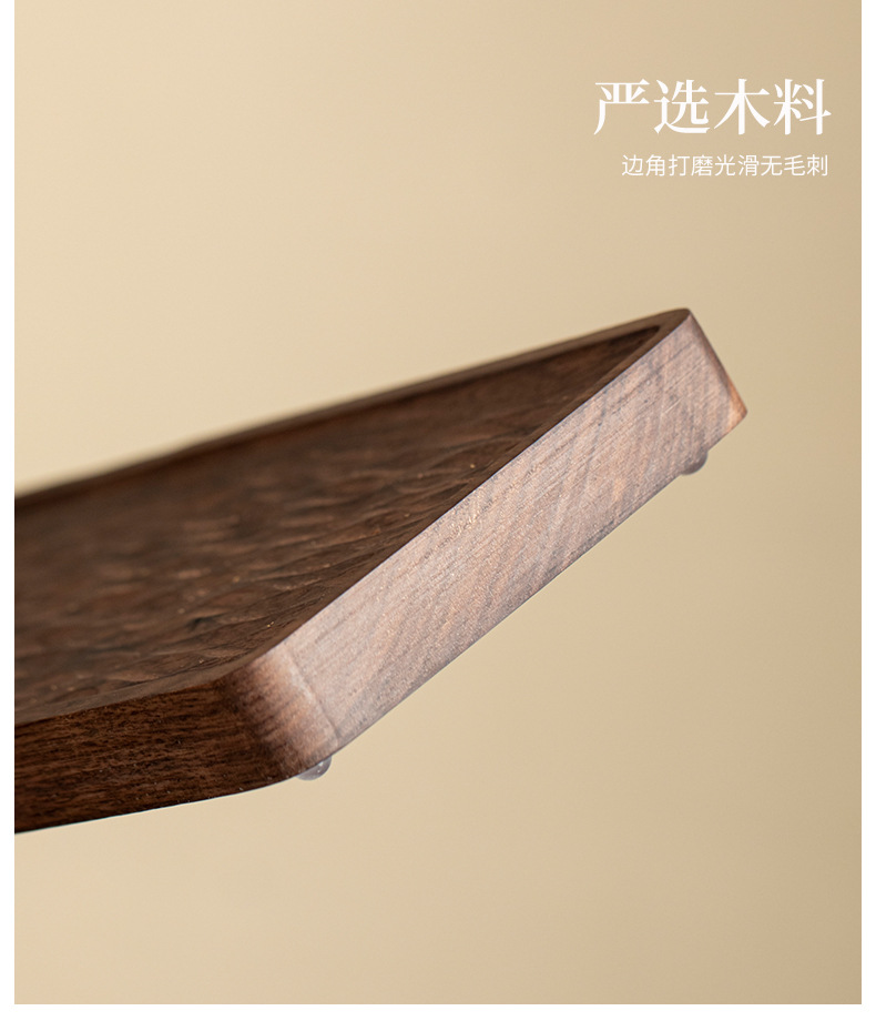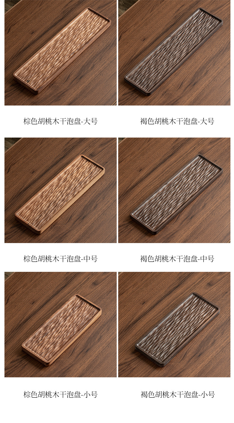 Khay trà gỗ nguyên khối kiểu Trung Quốc, khay pha khô kiểu Nhật đơn giản, bàn trà nhỏ, bộ trà Kung Fu hiện đại gỗ óc chó đen