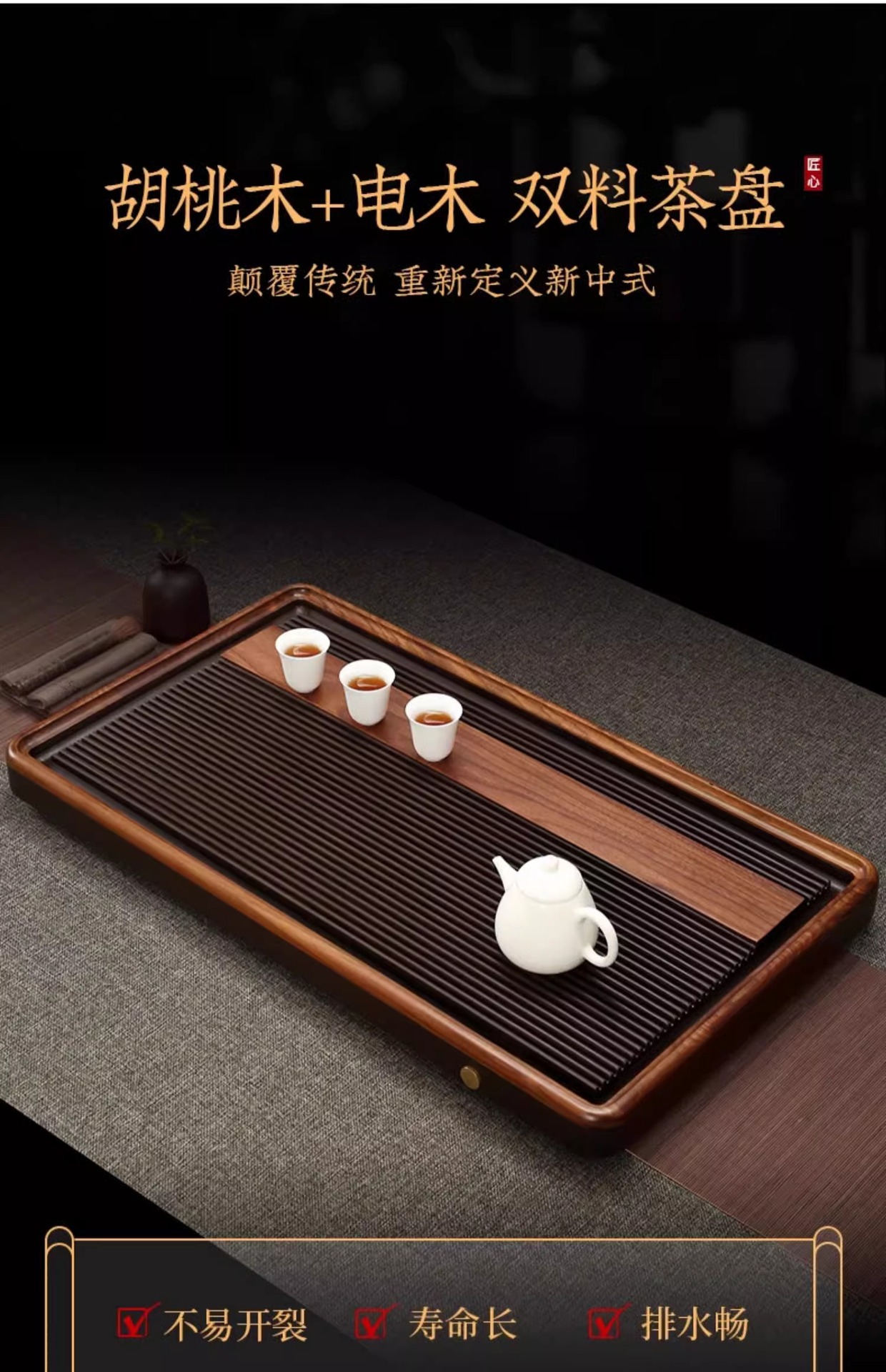 Khay trà Gỗ Óc Chó Bắc Mỹ bàn trà đơn giản pha khô gia dụng bằng gỗ điện Đức Bộ trà Gỗ Solid cao cấp kiểu Trung Quốc mới