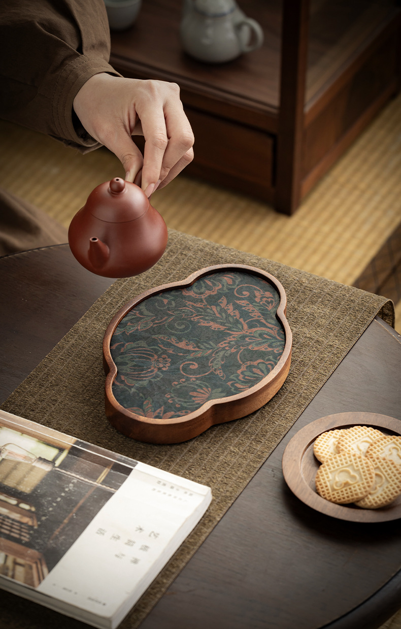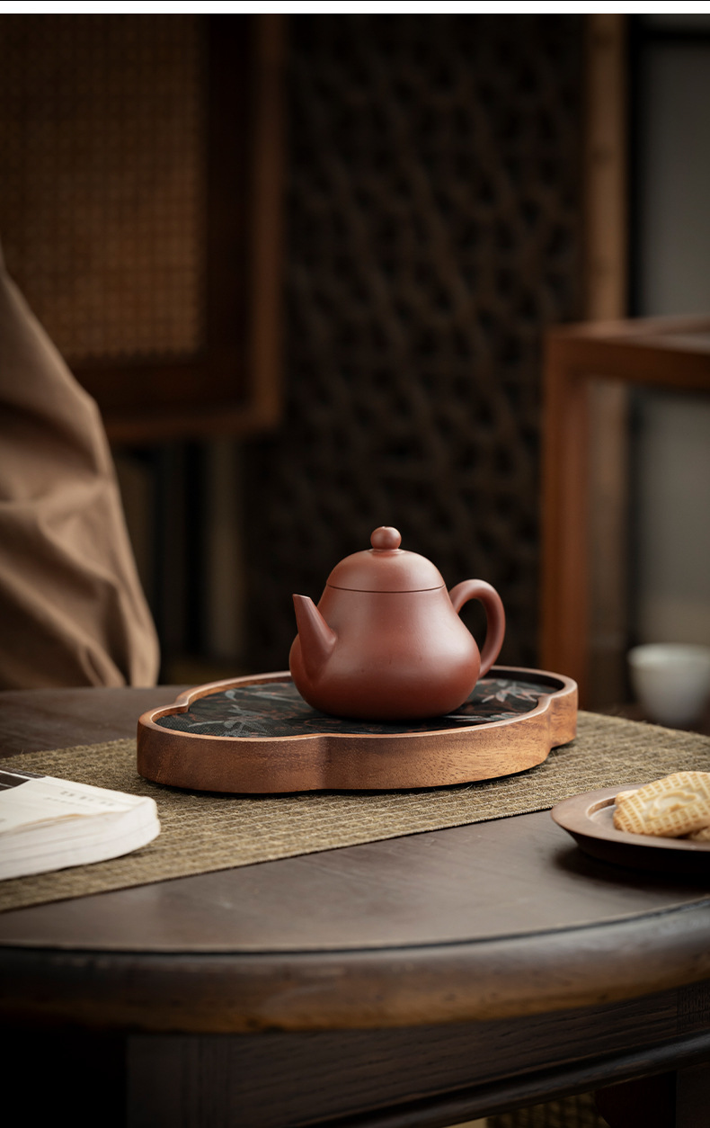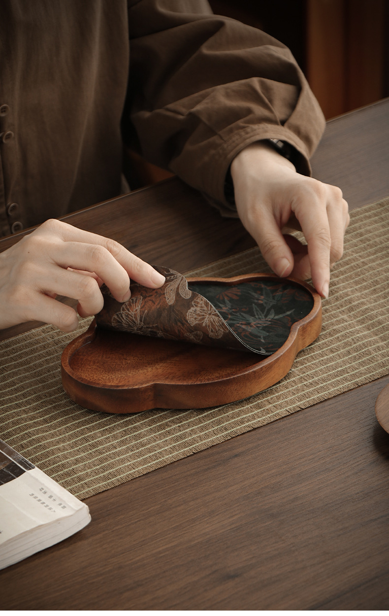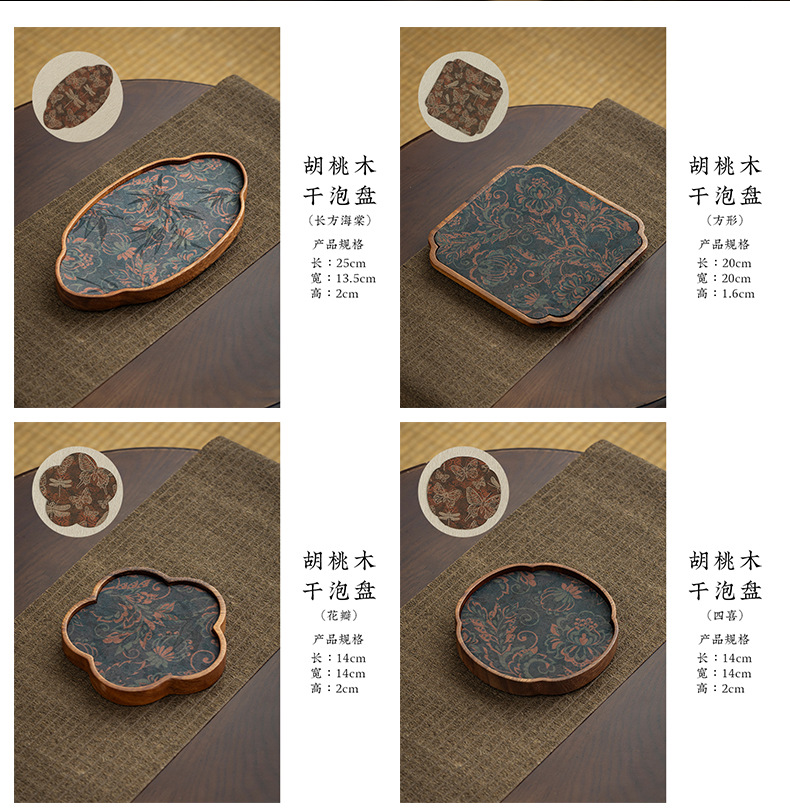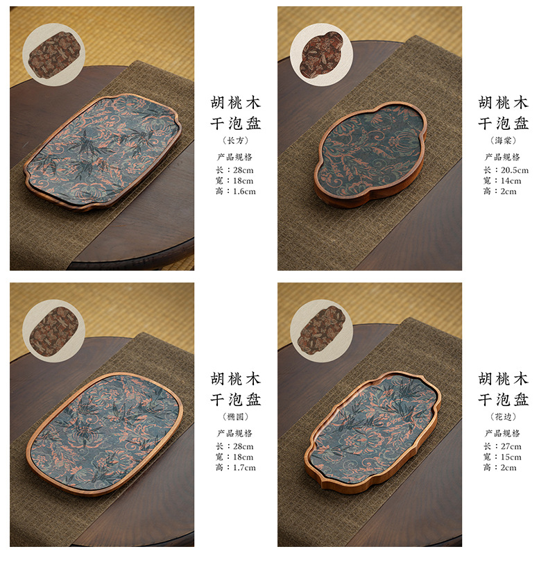 - Khay trà gỗ óc chó khay pha khô cổ điển kiểu Trung Quốc khay đựng trà nhỏ gia dụng bộ trà Kung Fu mẫu mới 2024