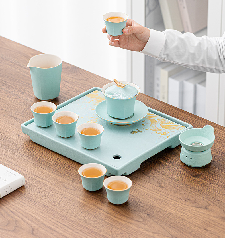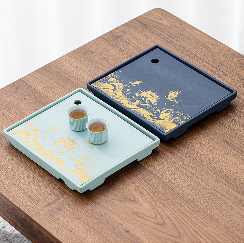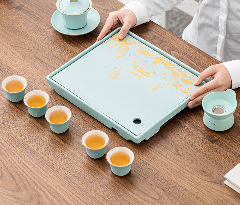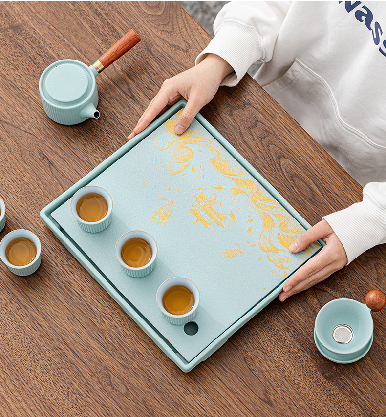 Khay trà gốm sứ Kung Fu thời trang Tử Cấm Thành, phòng khách gia dụng, bàn trà pha khô kiểu trữ nước kiểu Trung Quốc sang trọng hiện đại