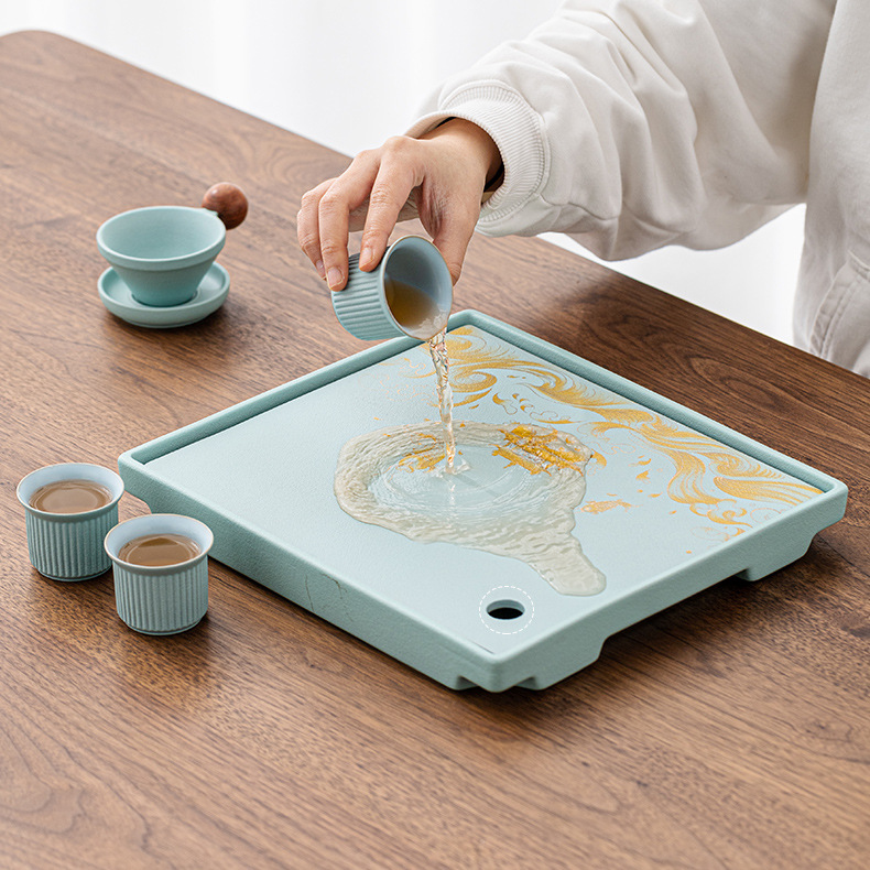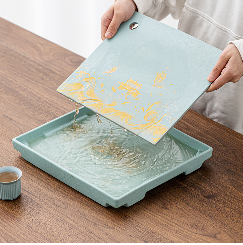 - Khay trà gốm sứ Kung Fu thời trang Tử Cấm Thành, phòng khách gia dụng, bàn trà pha khô kiểu trữ nước kiểu Trung Quốc sang trọng hiện đại