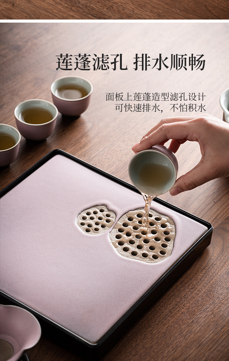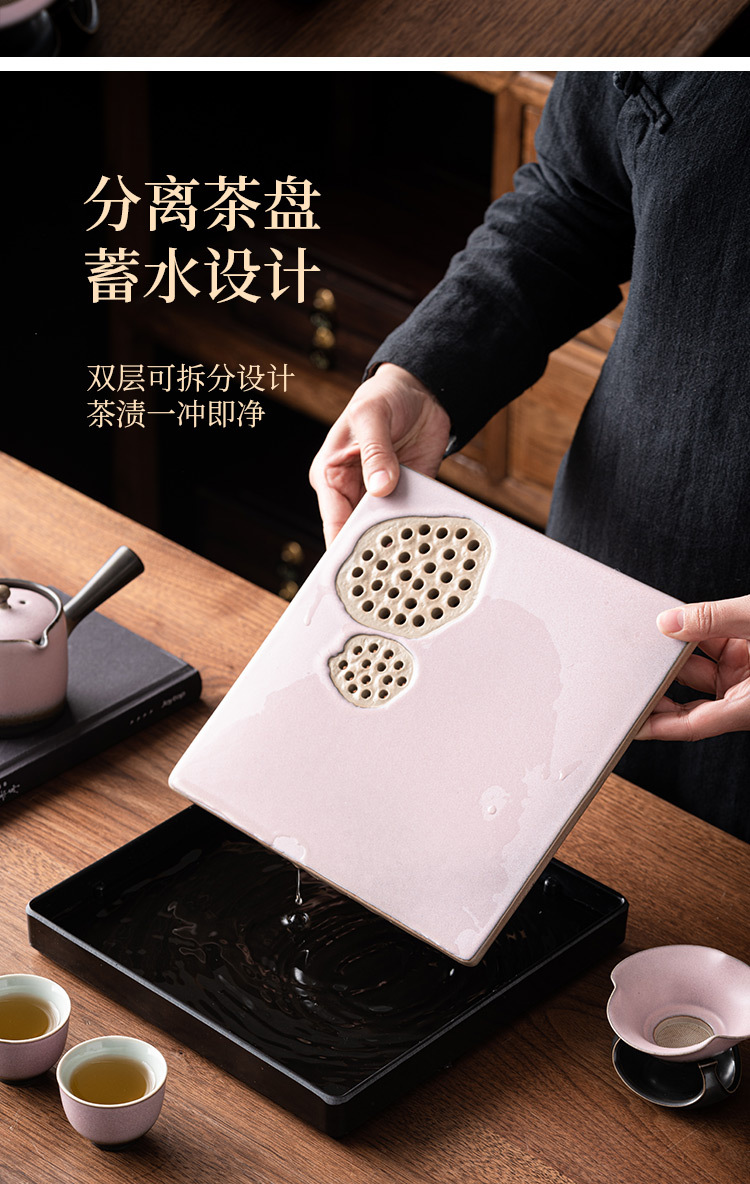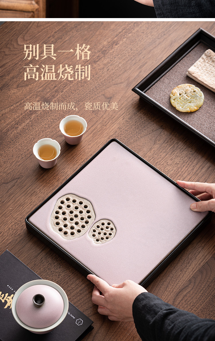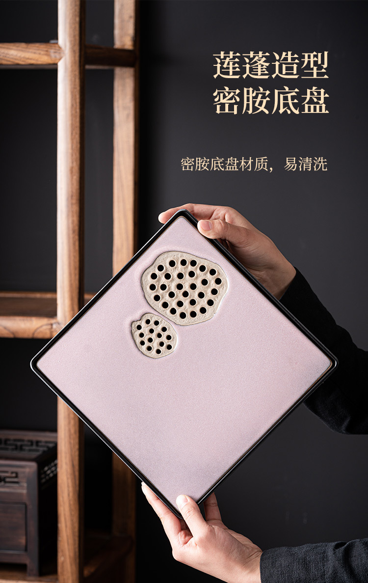 - Khay trà gốm sứ lò nung, khay thoát nước phòng khách gia dụng, Bộ trà Kung Fu loại nhỏ kiểu giữ nước hình vuông, Khay bàn trà pha khô