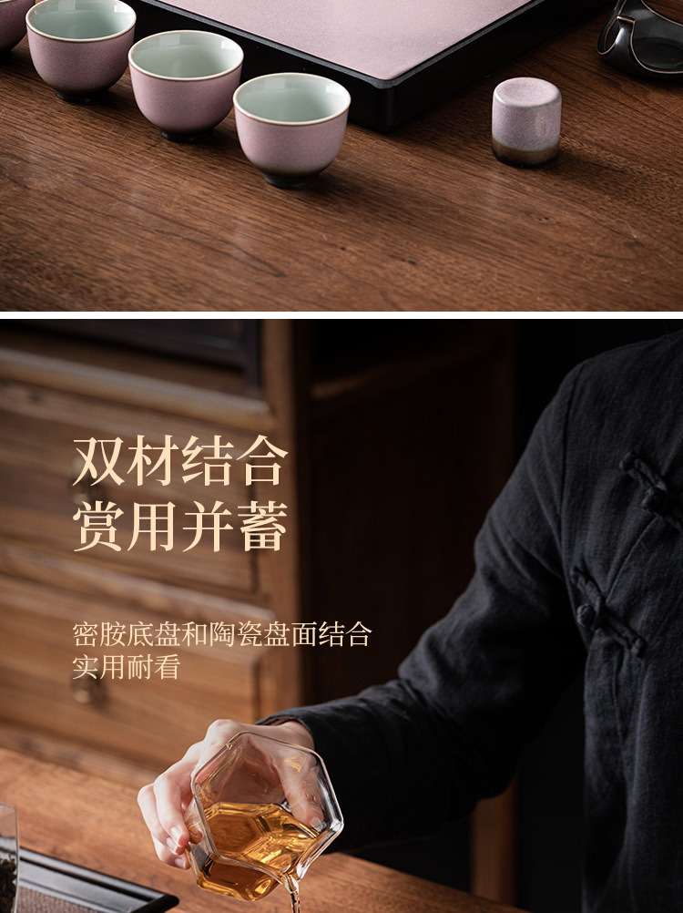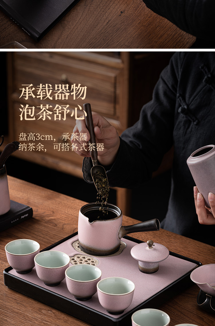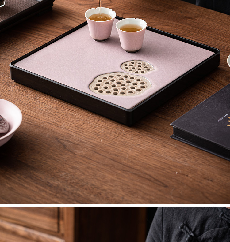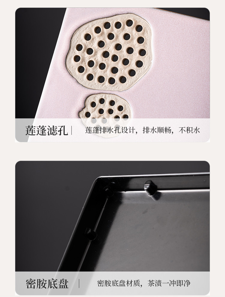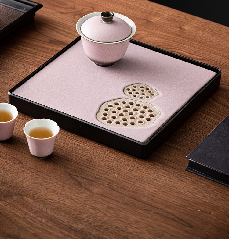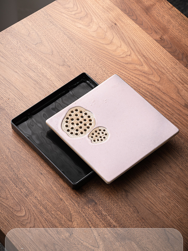 - Khay trà gốm sứ lò nung, khay thoát nước phòng khách gia dụng, Bộ trà Kung Fu loại nhỏ kiểu giữ nước hình vuông, Khay bàn trà pha khô