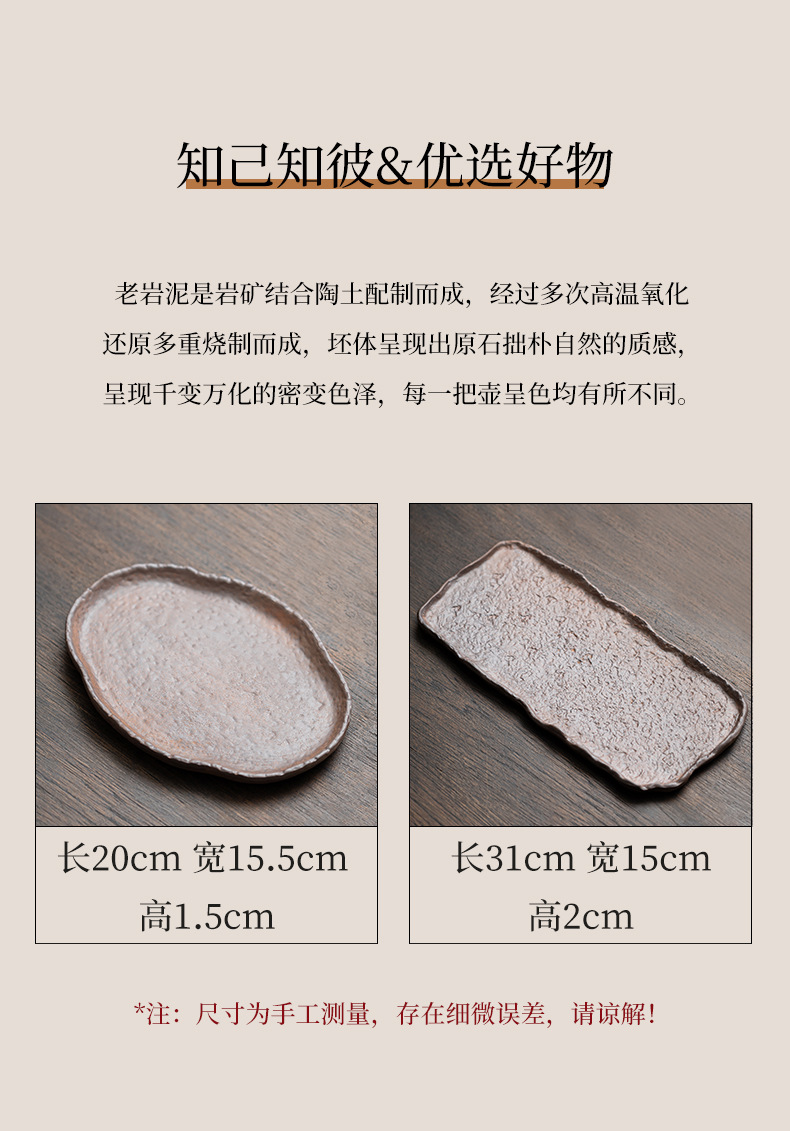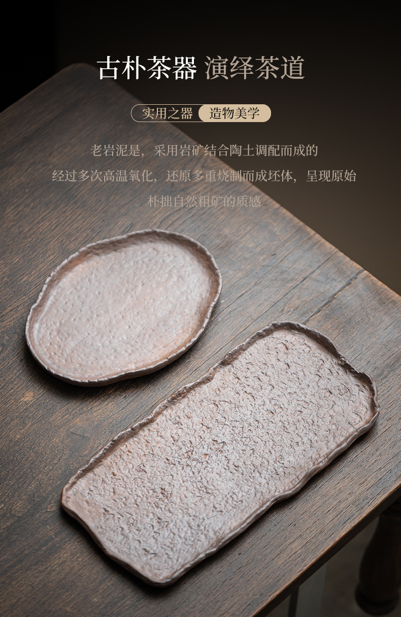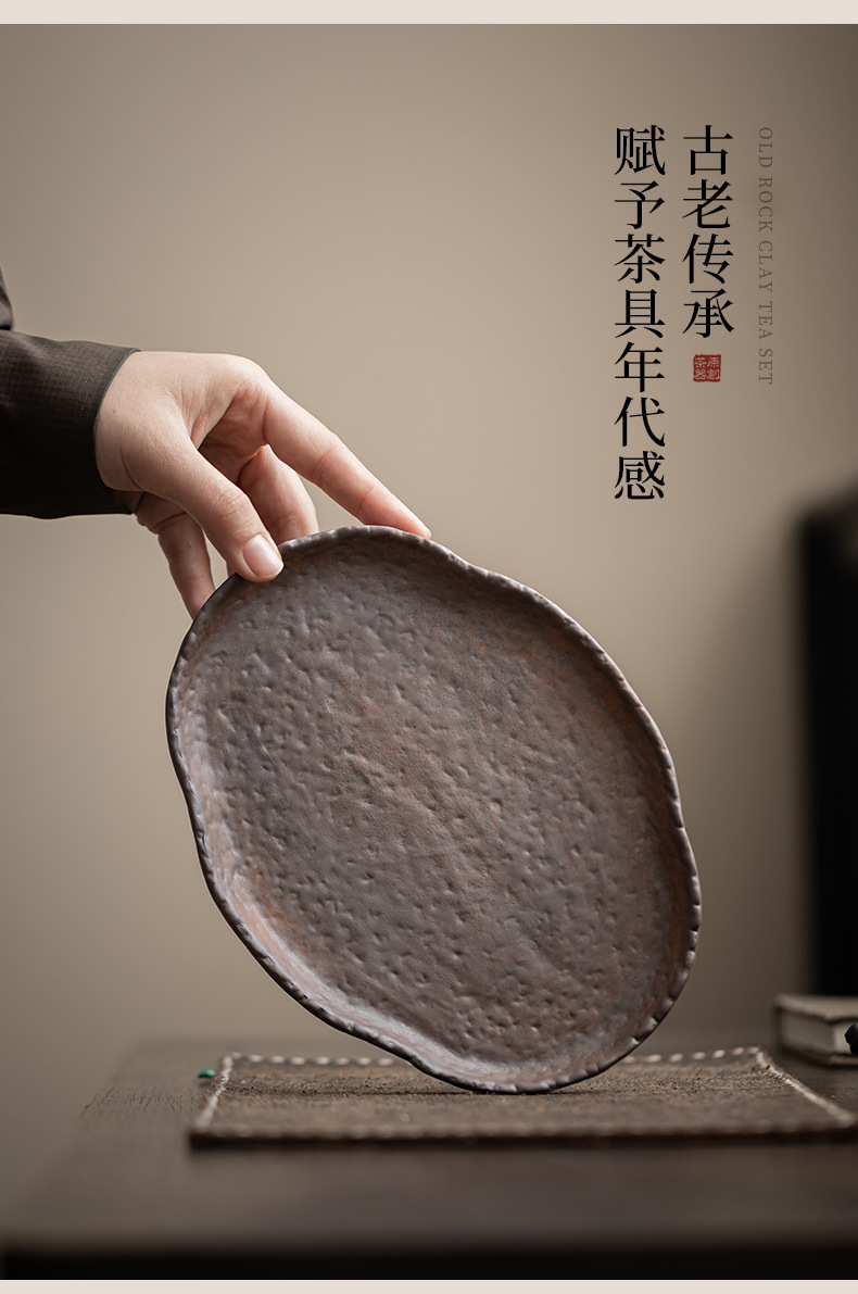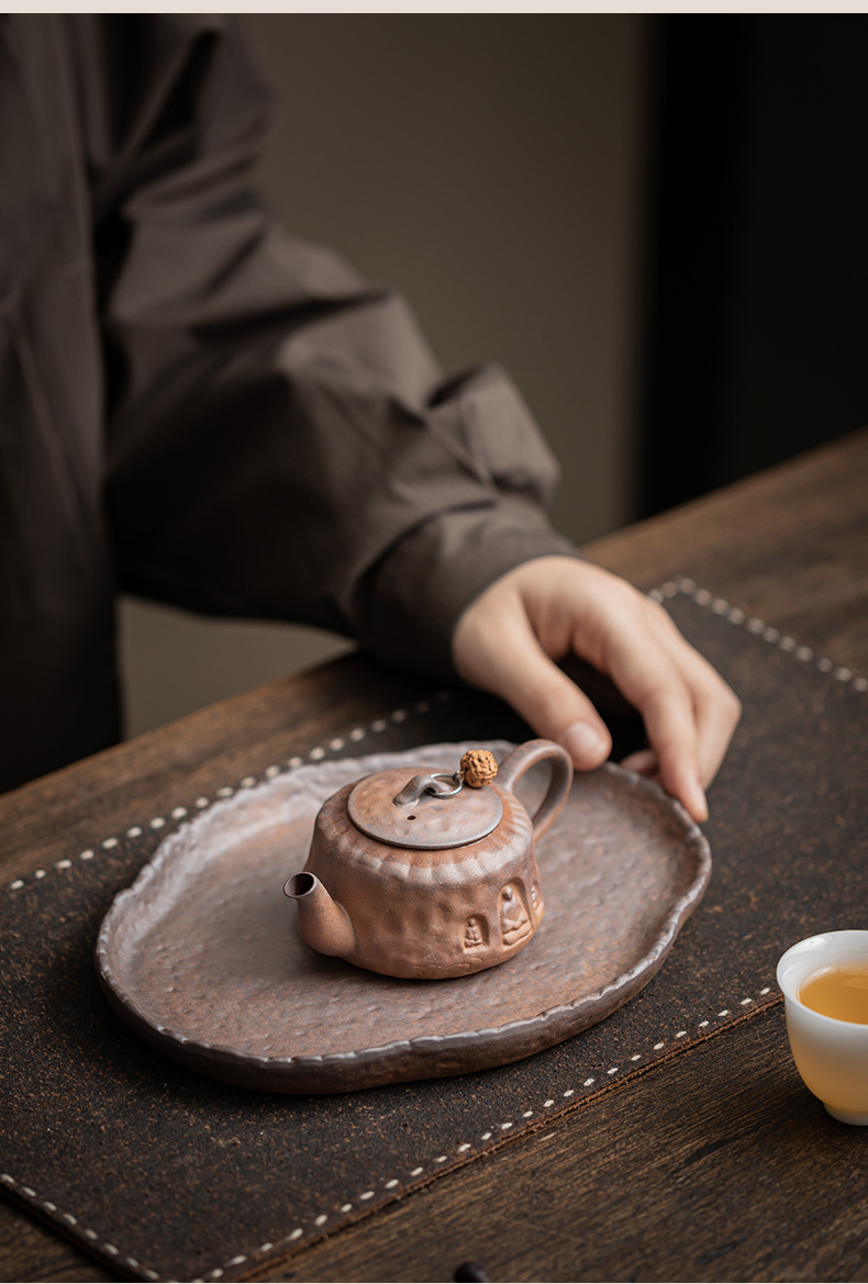 - Khay trà gốm thô đất đá cũ khay xốp khô hình vuông khay trà bàn trà nhỏ gia dụng cổ điển ấm trà cầm tay bộ trà Kung Fu