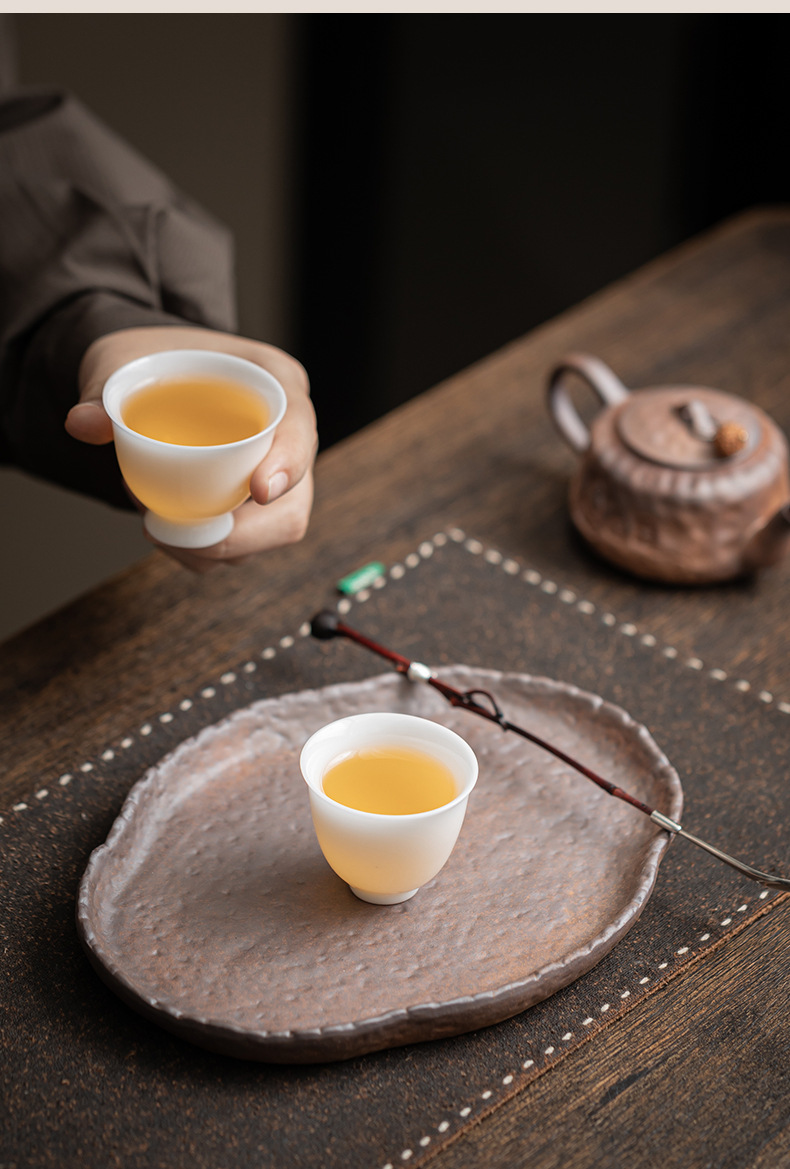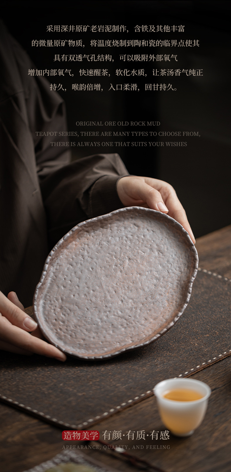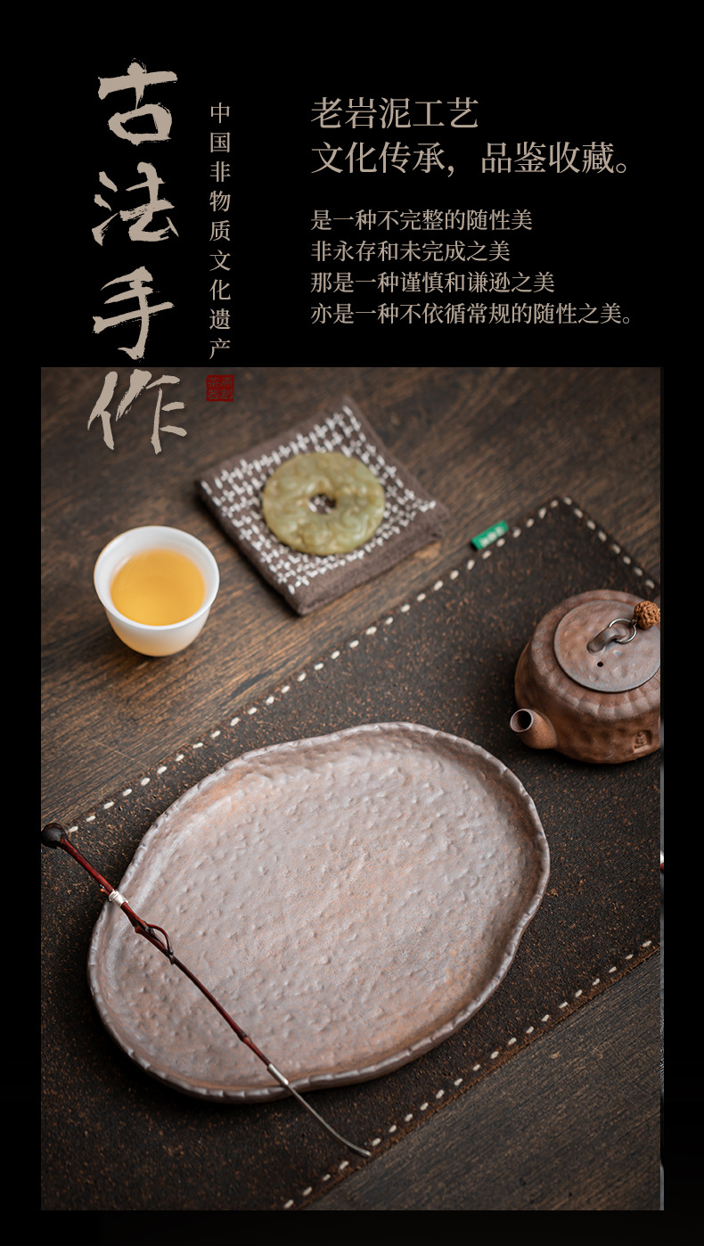 - Khay trà gốm thô đất đá cũ khay xốp khô hình vuông khay trà bàn trà nhỏ gia dụng cổ điển ấm trà cầm tay bộ trà Kung Fu